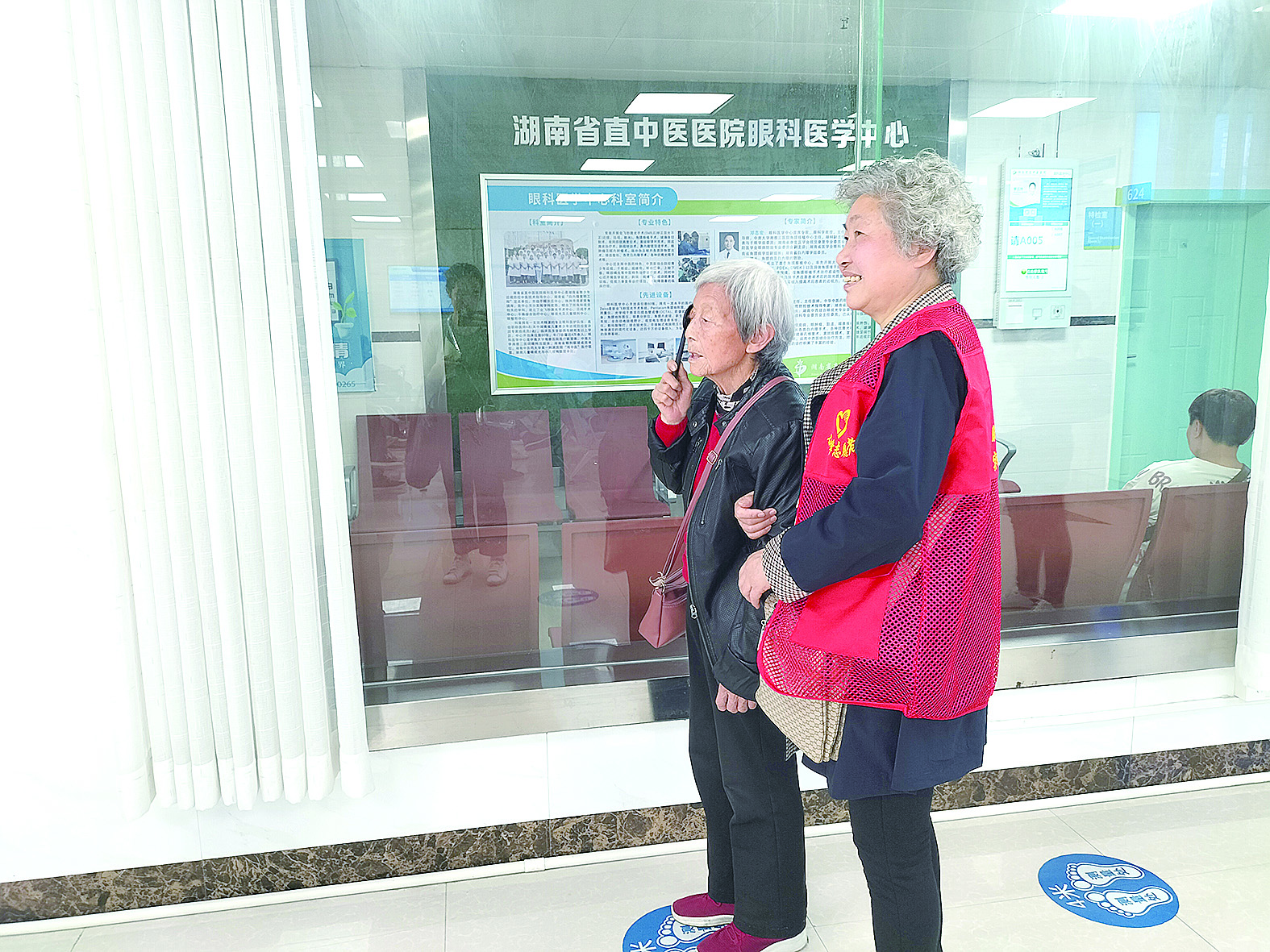 志愿者何梦花和出租车驾驶员一起搀扶老人下车。 株洲日报全媒体记者/杨凌凌 摄