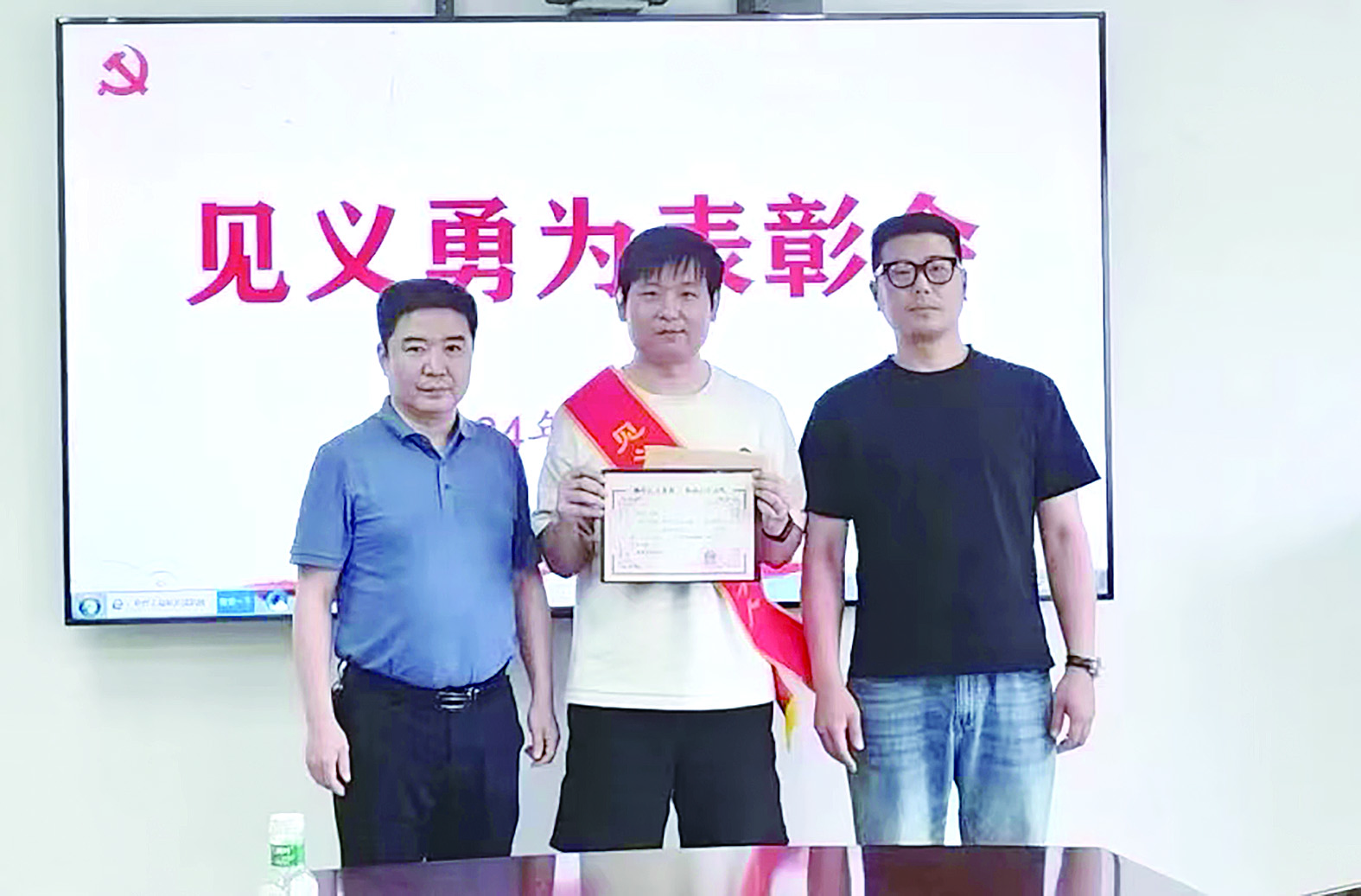 陈锃(中)接受芦淞区文明办表彰。 受访者供图