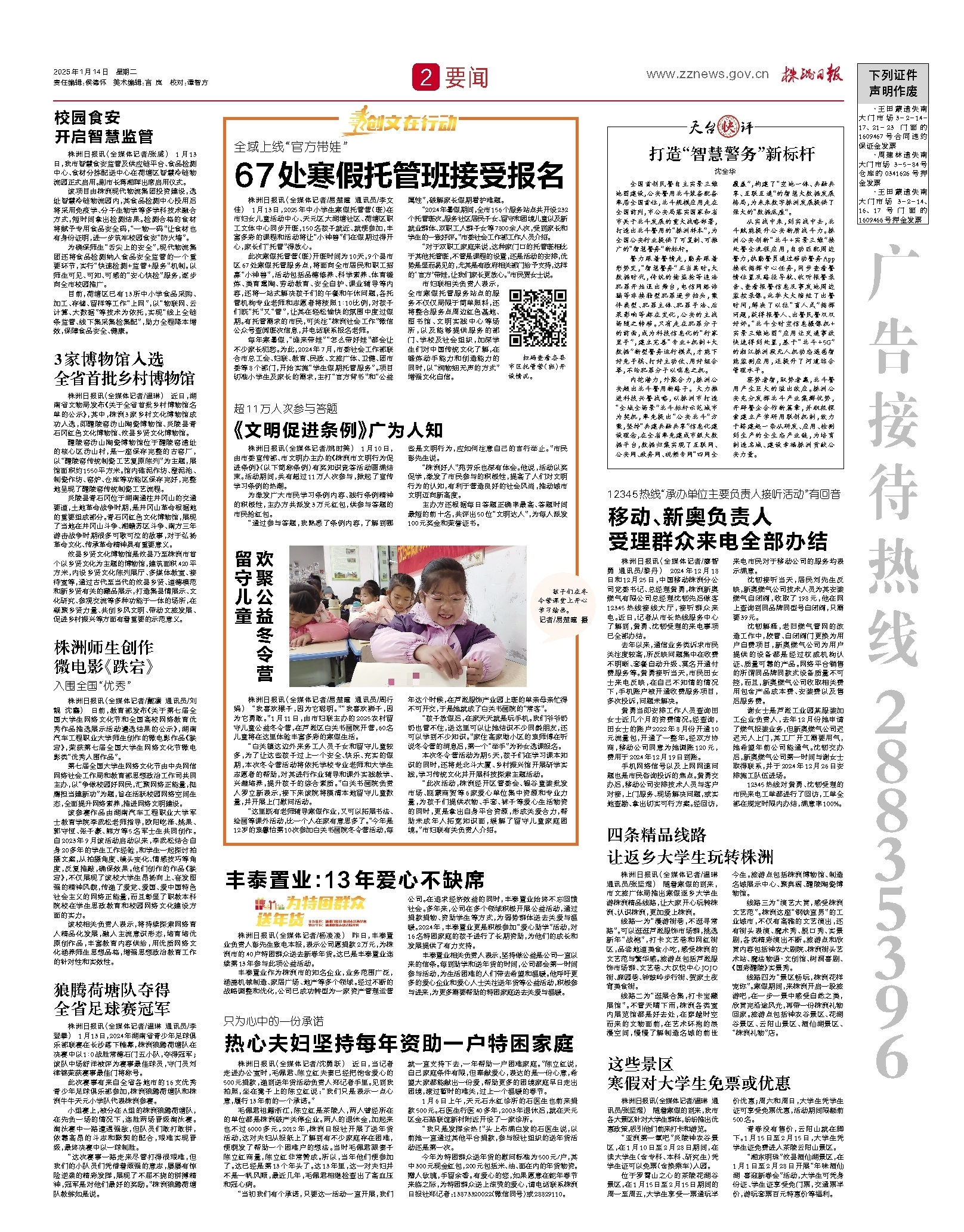 2025年01月14日《株洲日报》