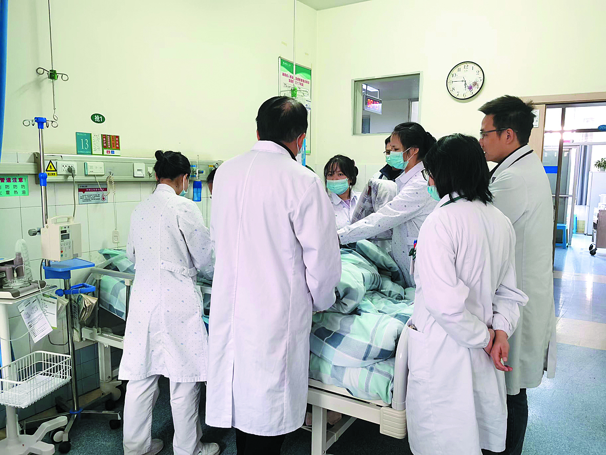 医护人员查看戴爷爷病情。通讯员供图