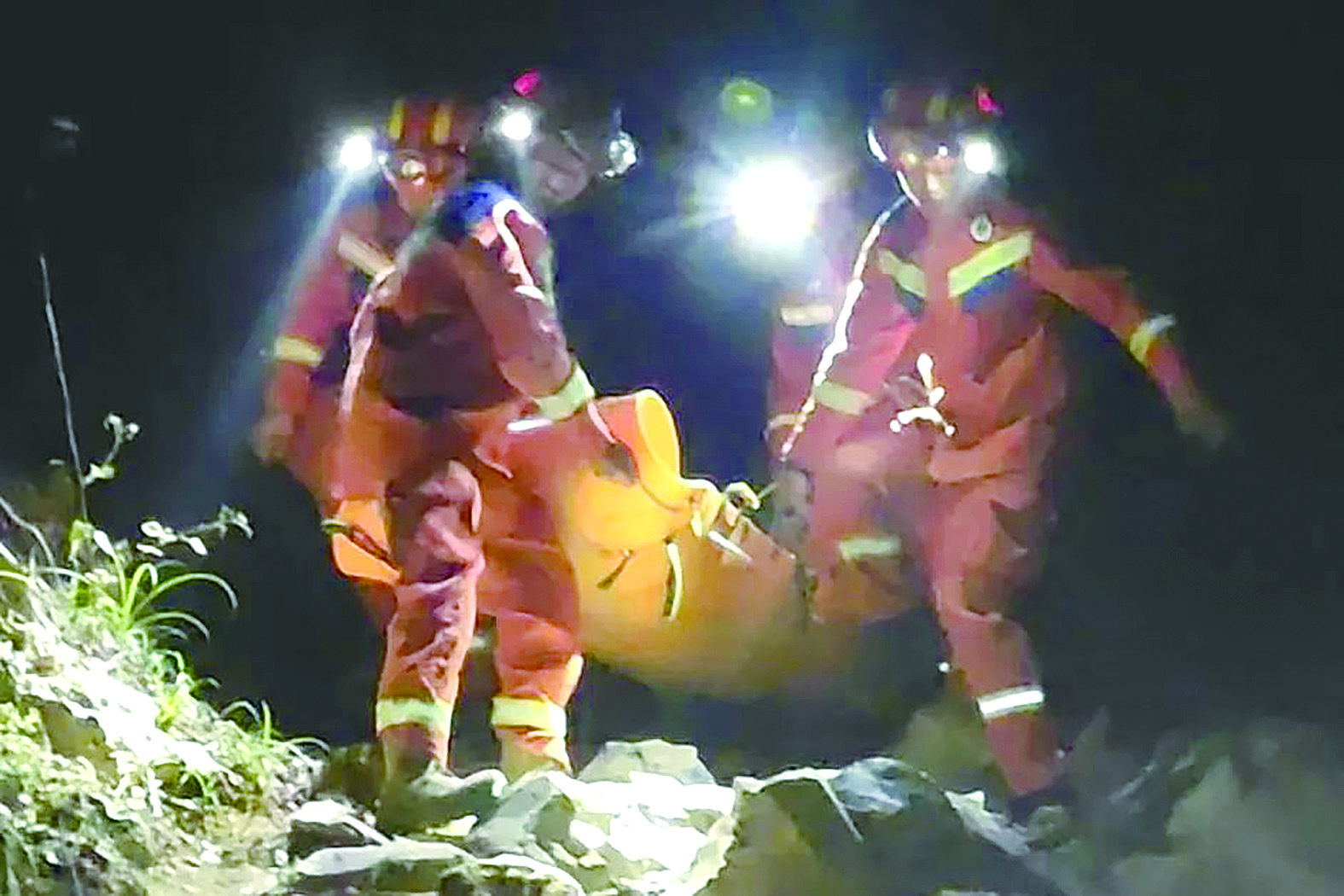 夜幕笼罩下的深山,草木浓密,地势崎岖而复杂,广袤的山林为搜救工作带来了巨大挑战。消防救援人员沿着蜿蜒的山路挺进,不断大声呼喊,试图在寂静的山林中寻找到老人的回应。经过一番艰难搜寻,终于在一处隐蔽的丛林中发现了被困的老人。