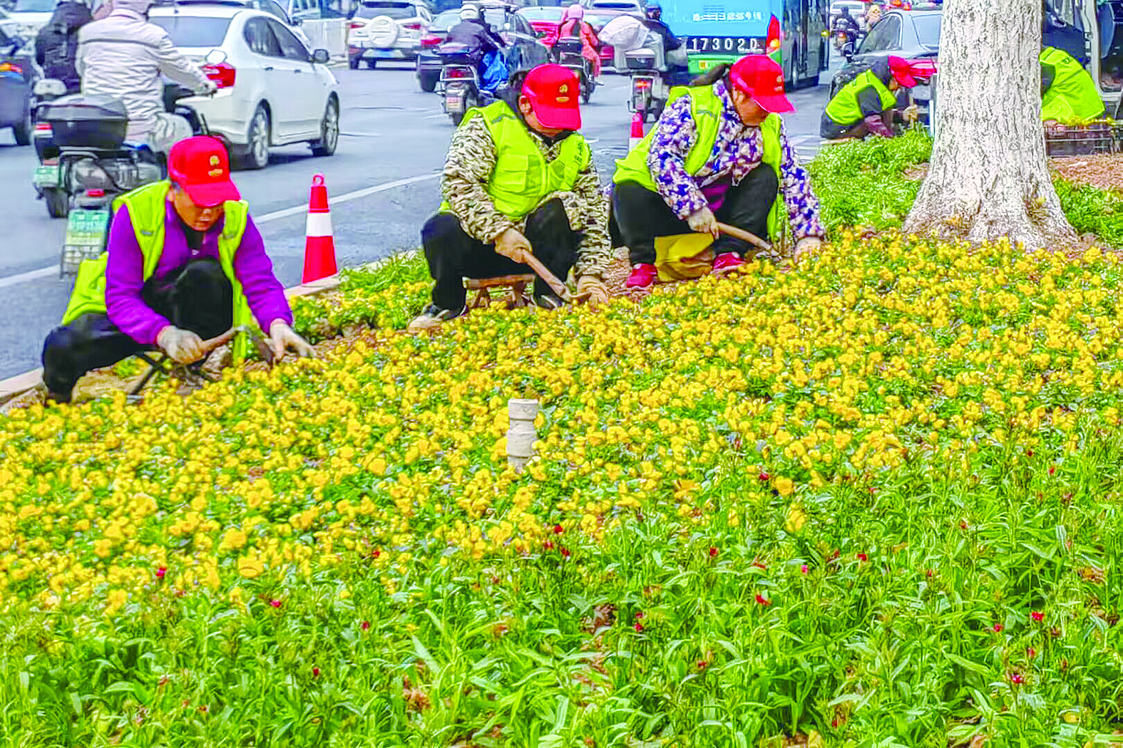 鲜花扮靓新年街景