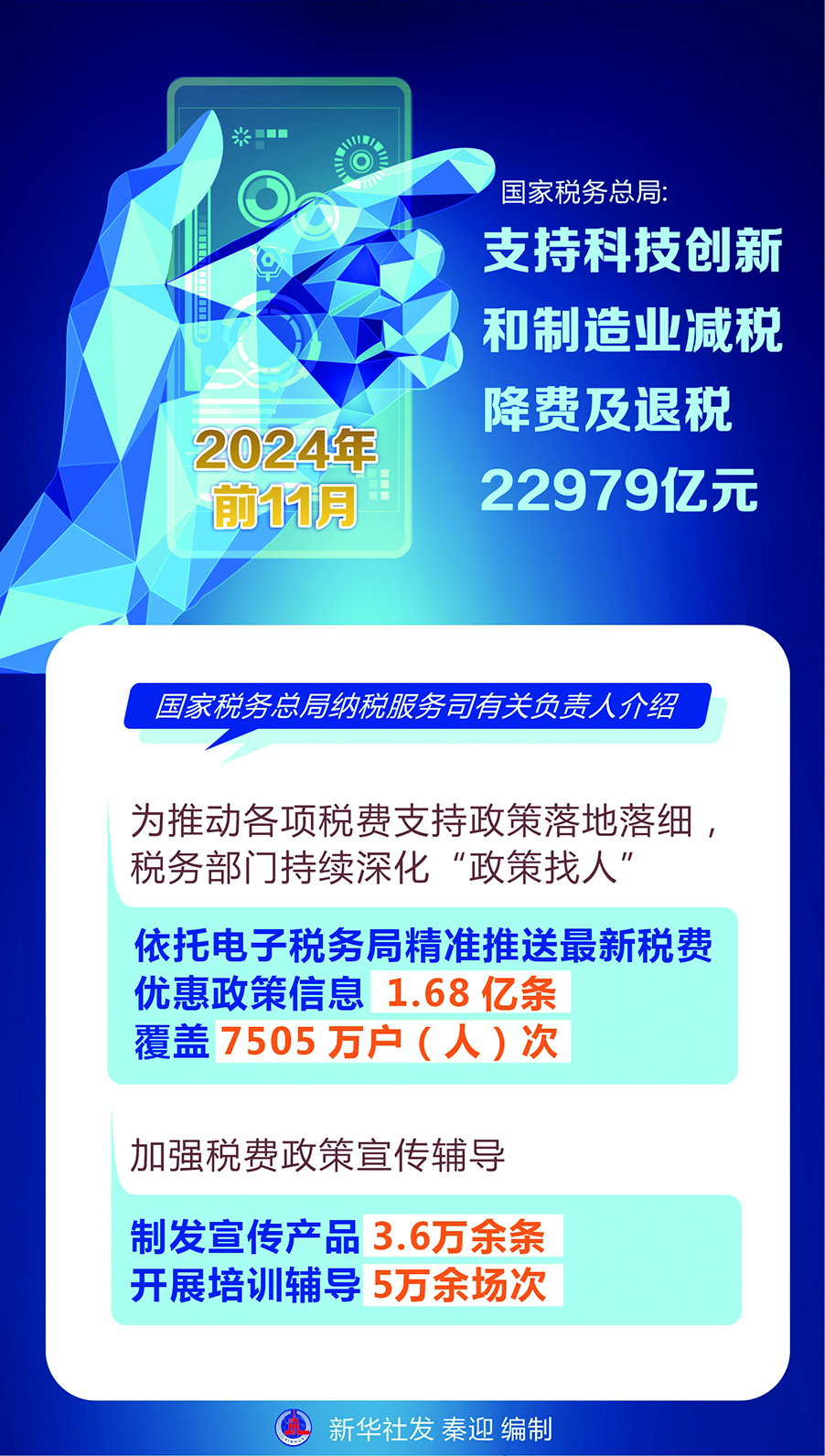 2024年前11月 国家税务总局:支持科技创新和制造业减税降费及退税22979亿元