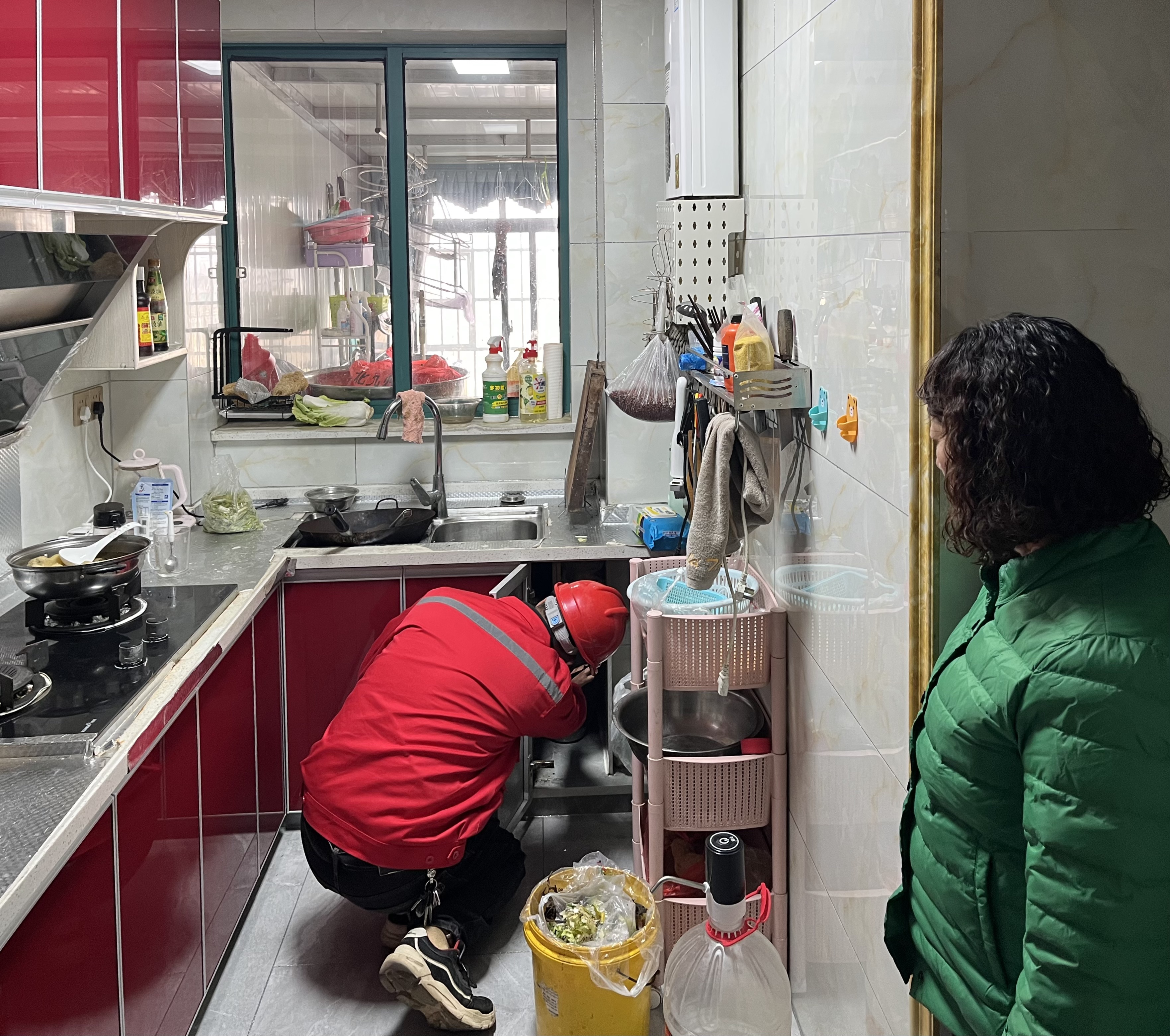中油燃气巡检员入户对家用燃气设施进行全面检查。 记者/刘平 摄