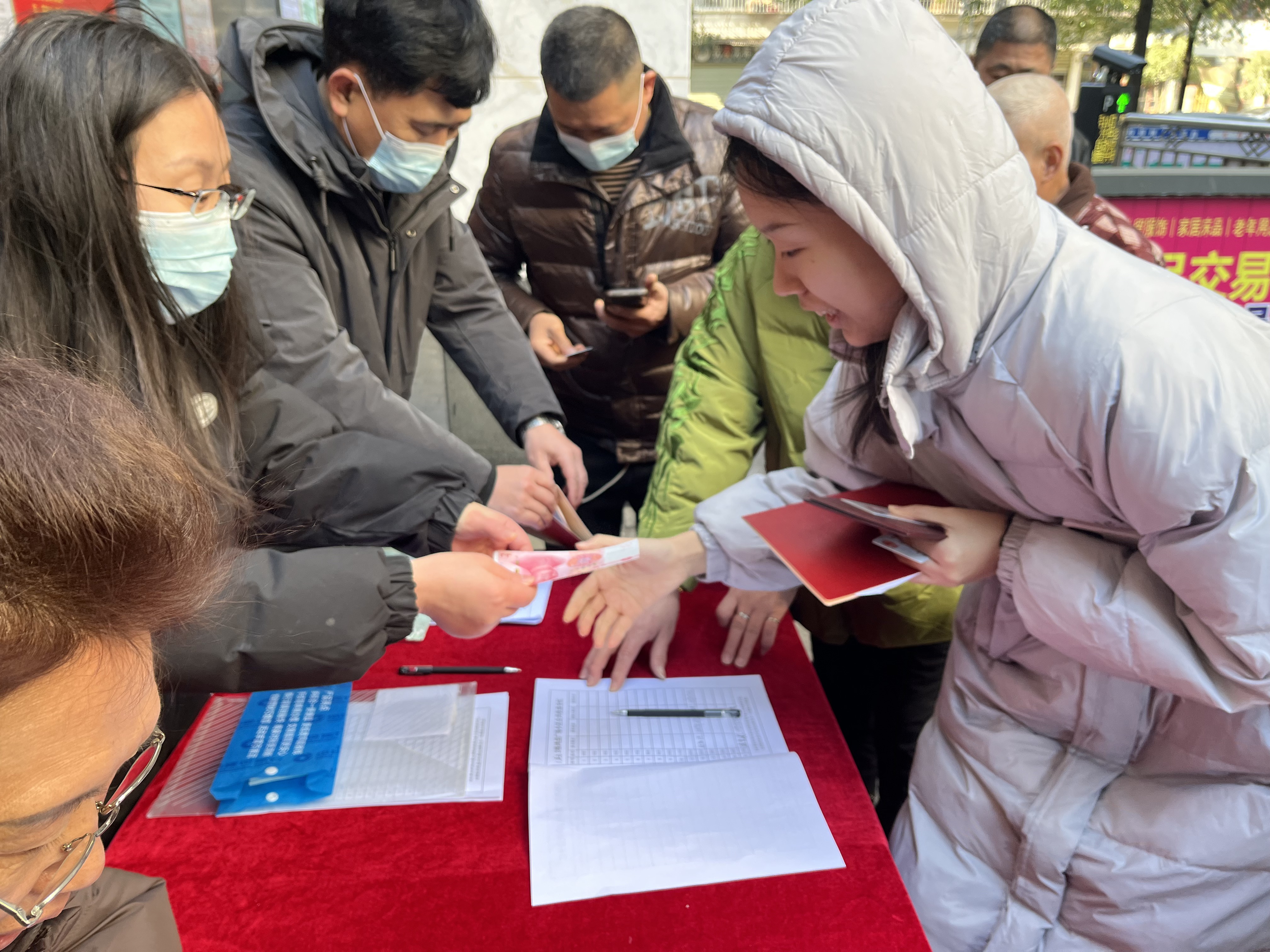 小区业主领取现金红包。 记者/刘平 摄