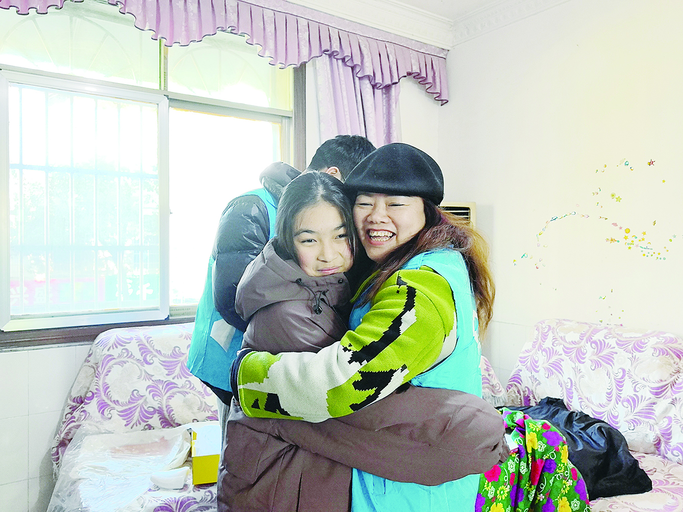 志愿者和受捐赠的孩子拥抱在一起。 通讯员 供图