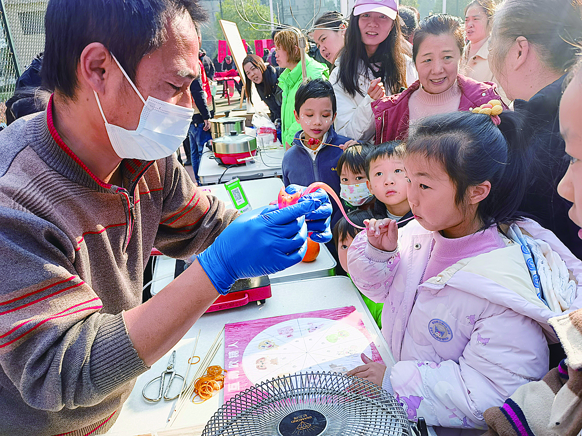 舞台上,文艺汇演涵盖歌舞、朗诵等多元艺术形式,展现了居民才艺。台下,设置了非遗糖葫芦与糖画制作、写春联、猜灯谜以及趣味亲子运动会等环节,气氛热烈非凡,掌声此起彼伏。居民们在参与过程中,不仅加深了对社区文化的理解与认同,更彰显出新塘社区积极向上的文化风貌,让居民共享节日欢乐氛围。