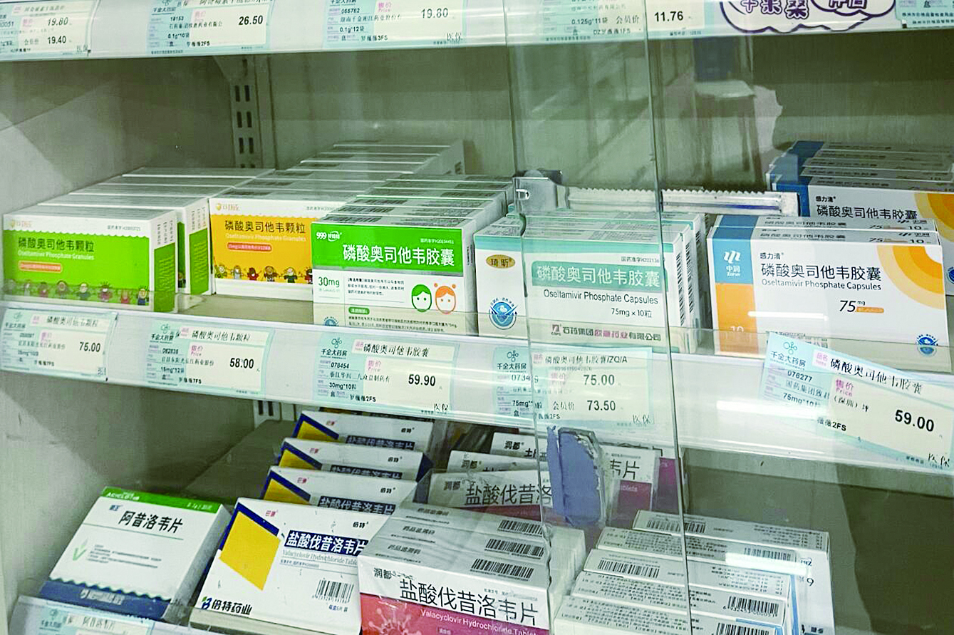 在韶山路一家药店,“奥司他韦”供应充足。 记者/刘平 摄