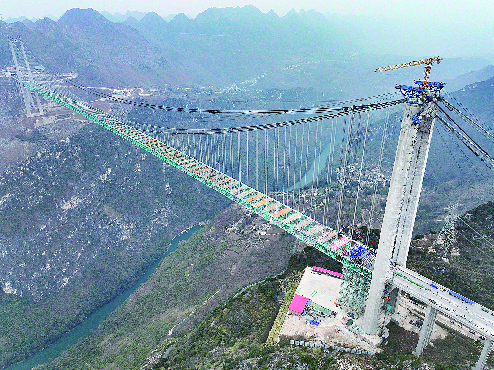 1月17日,在建世界第一高桥——贵州六安高速公路花江峡谷大桥成功合龙,为今年通车运营打下坚实基础。项目资料显示,大桥为钢桁梁悬索桥,全长2890米,其中主桥跨径1420米,桥面至水面高度625米。建成后,会成为新的世界第一高桥、世界第一的山区跨径桥梁。