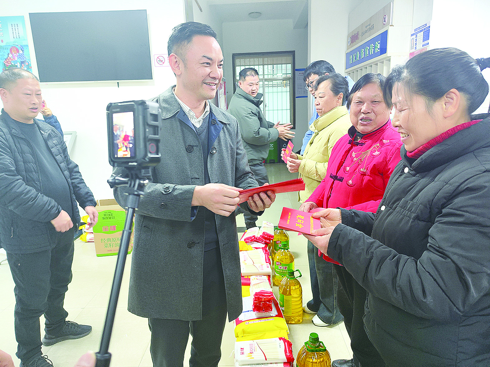 创意思艺负责人吴斌将爱心年货送到困难群众手中。 株洲日报全媒体记者/杨凌凌 摄