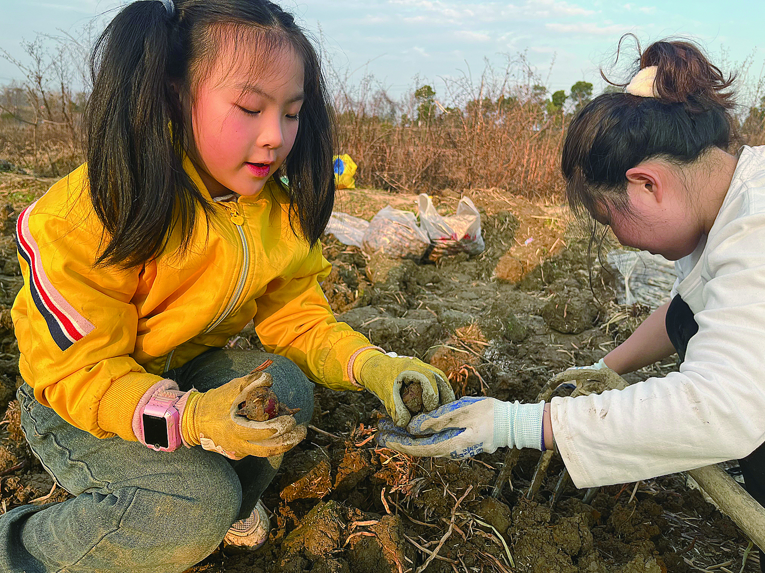 寒假里,许多家庭前来荸荠基地体验采挖乐趣。记者/谭昕吾 摄
