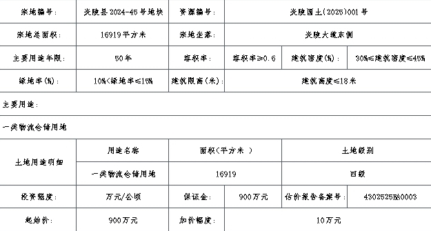 炎陵县2024-45号地块:(一)须按县自然资源局规划部门2024年12月17日出具的“炎规条件(2024)45号”规划条件及蓝线图实施;(二)按挂牌起始价全额缴纳土地竞买保证金,成交价款由竞得人自成交之日起10日内全额缴清。逾期未缴,按照违约相关规定处理;(三)成交后2个月内由县土地储备中心和霞阳镇人民政府共同负责交地,水、电由供水中心和供电公司负责到地块边界。