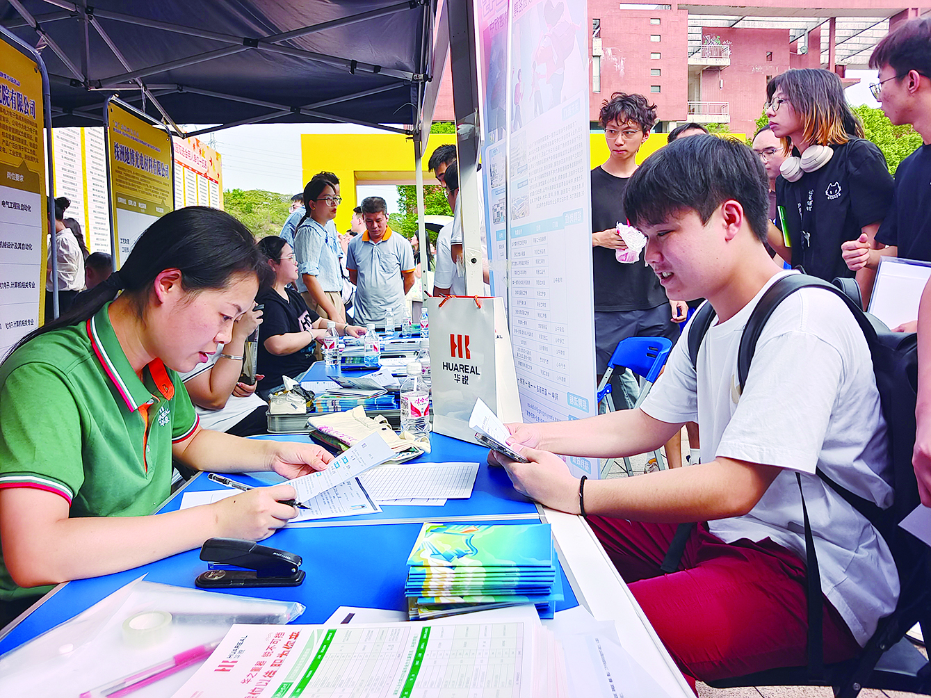 市人社局在湖南工业大学举行招聘会,指导大学生求职。(资料图) 记者/何春林 摄