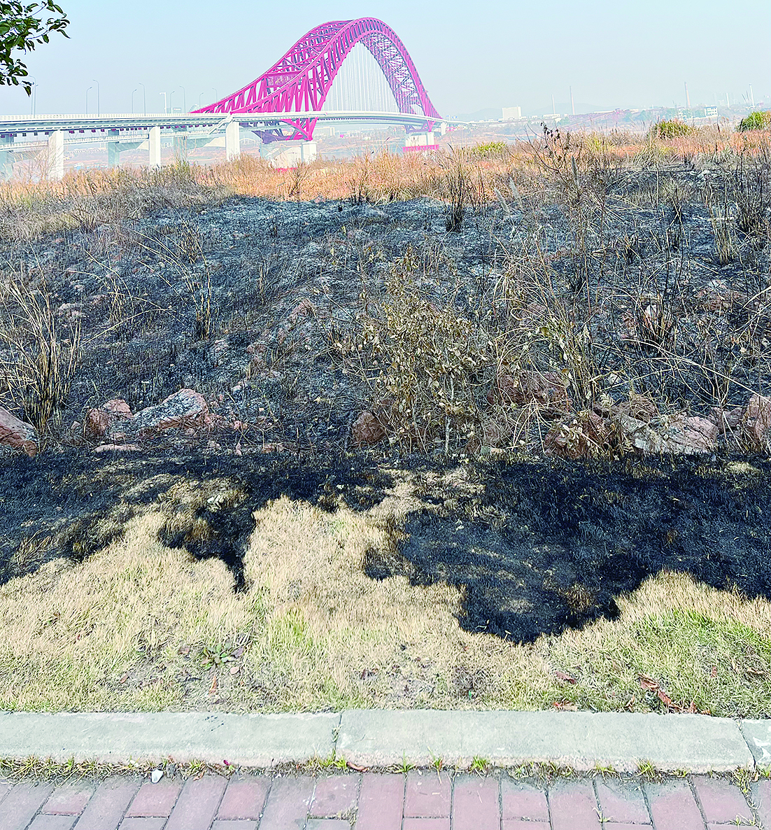近日,本报记者走访发现,石峰区石峰大桥桥头附近,天元区清水塘大桥桥头附近、芦淞大桥桥头附近及河西湘江风光带多处地方,江边草地有被焚烧的痕迹,现场留有烟花燃放后的残留物。