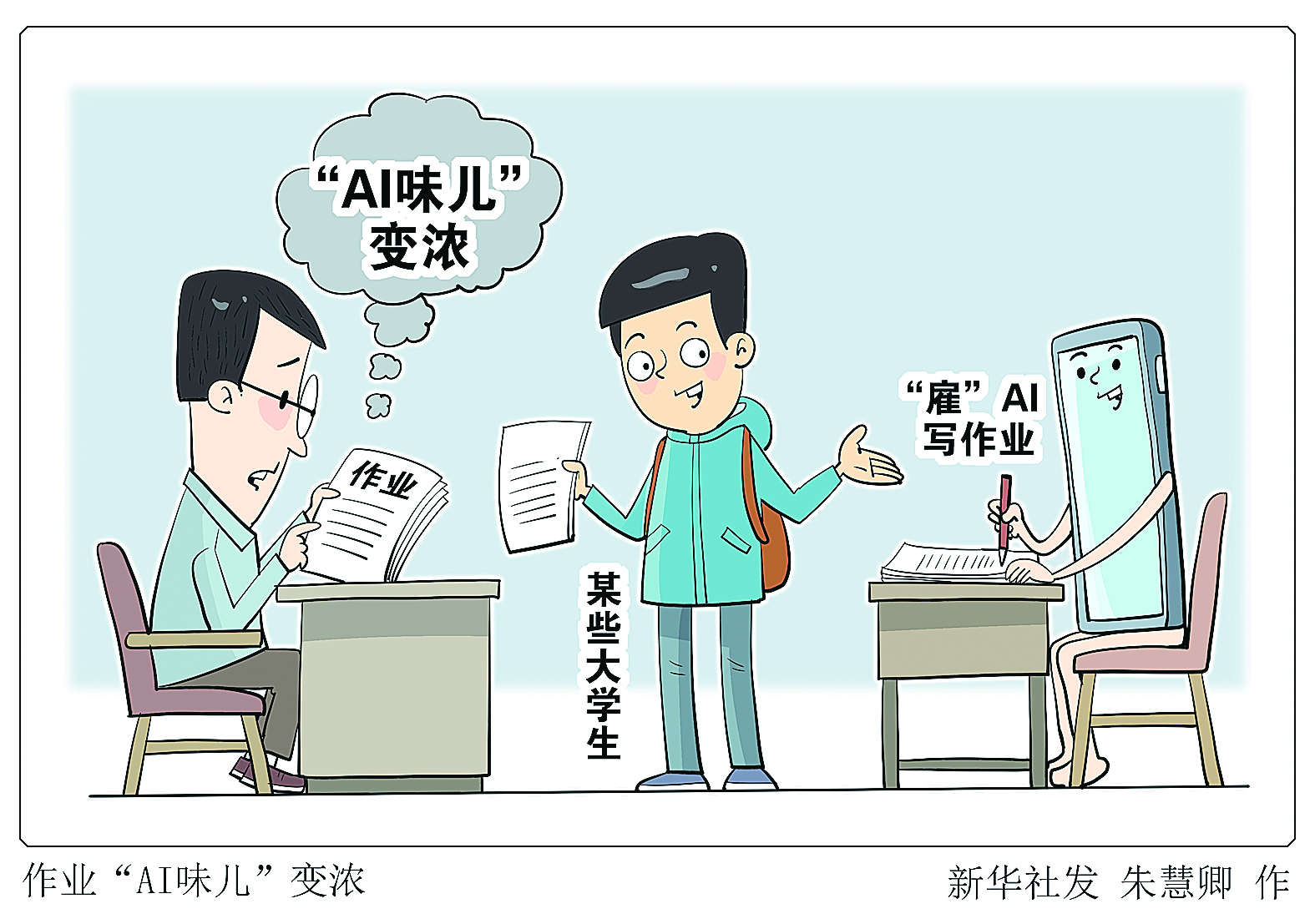随着人工智能大模型应用普及,不仅是论文,近年来大学生作业中的“AI味儿”也变浓了:使用AI工具,仅需几分钟即可生成一份看起来符合要求的作业内容。用AI工具写作业情况如何?怎样在效率与创造力中找到平衡?“新华视点”记者进行了调查。