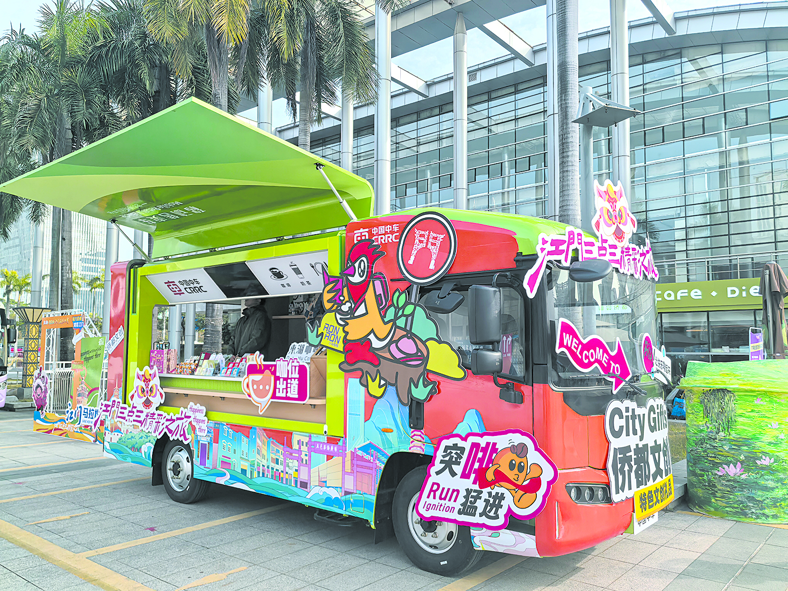 去年12月举行的江门马拉松博览会上,一辆文创咖啡车大放异彩,车内满载江门特色文创精品,不仅供应香醇咖啡与雅致茶饮,还化身为江门文化的“移动展厅”,方便消费者的同时,成为城市一道靓丽风景线。