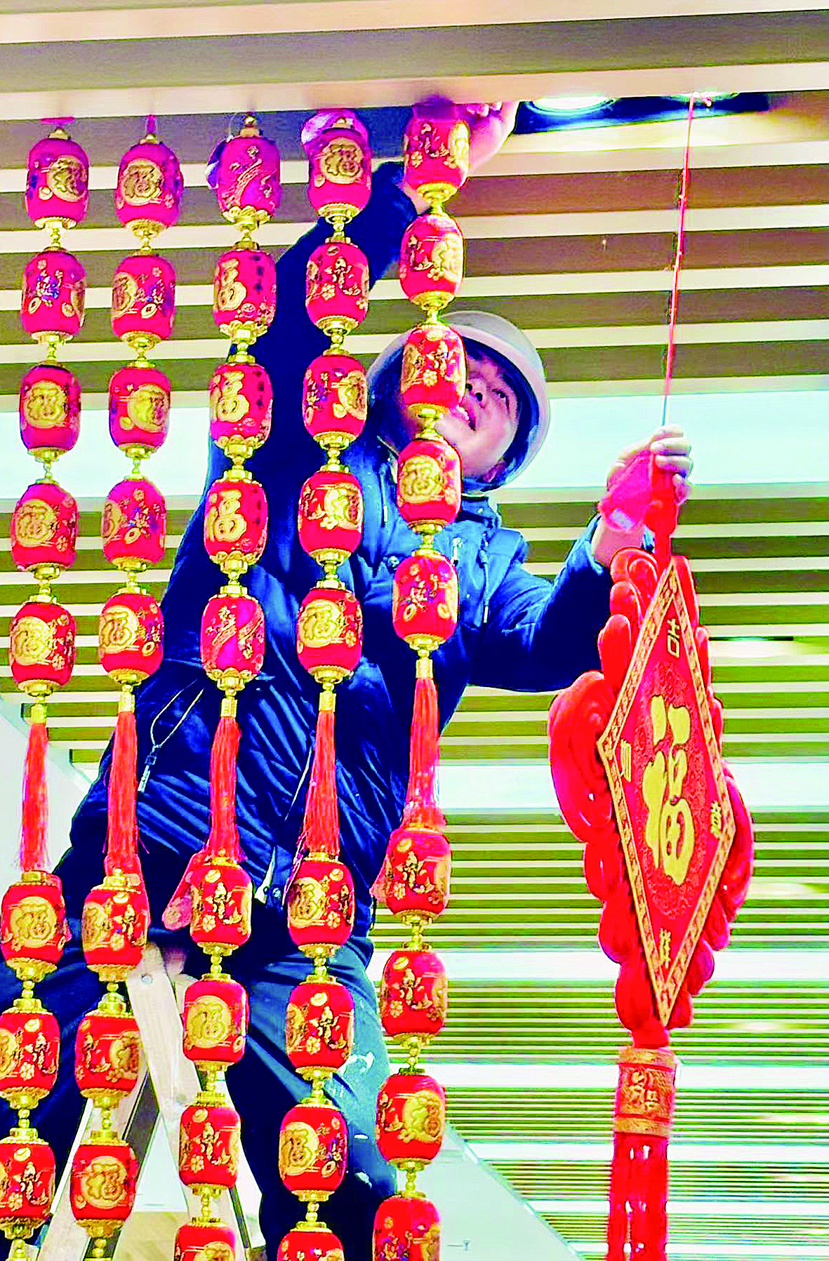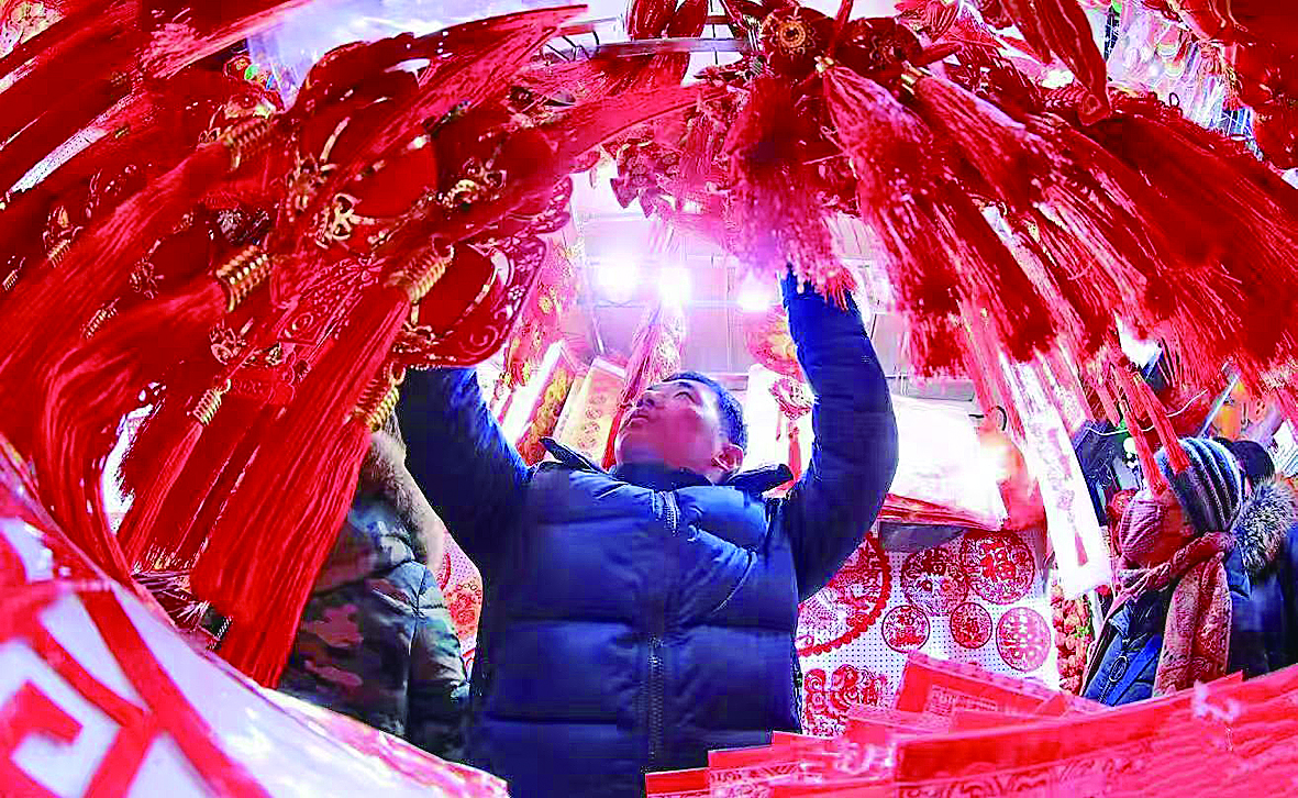 精心挑选春节挂饰。龚莉 摄