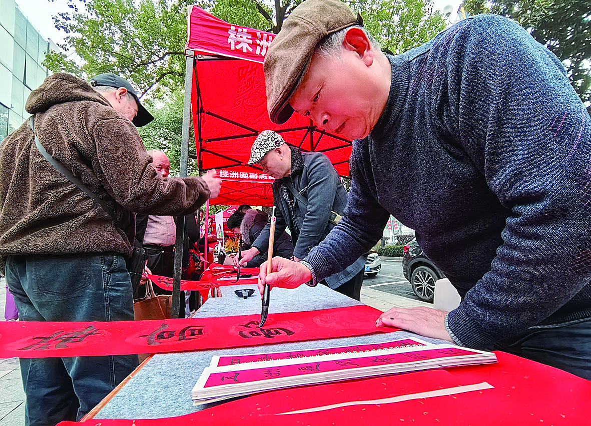 为市民撰写对联。谢汉仙 摄