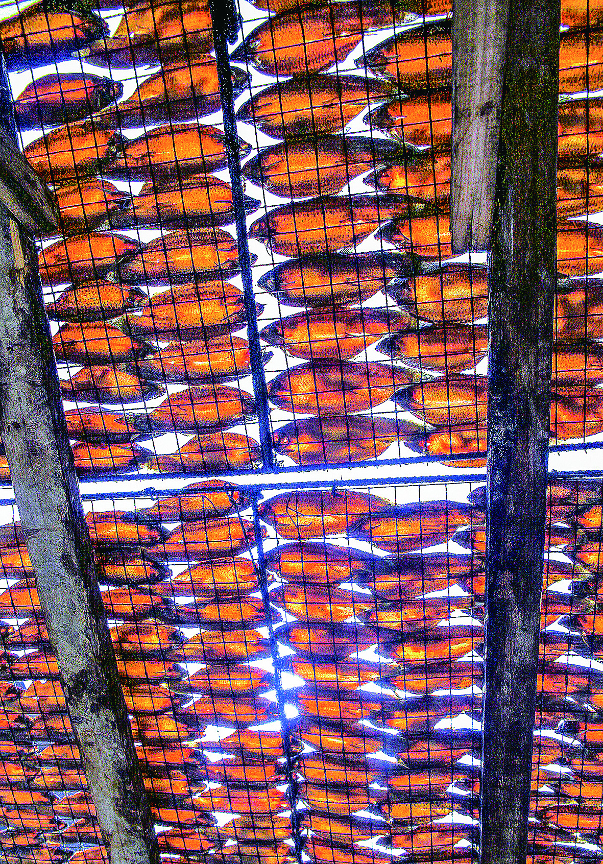 渌口老街,为过年晾晒的鱼片。吴东沙 摄