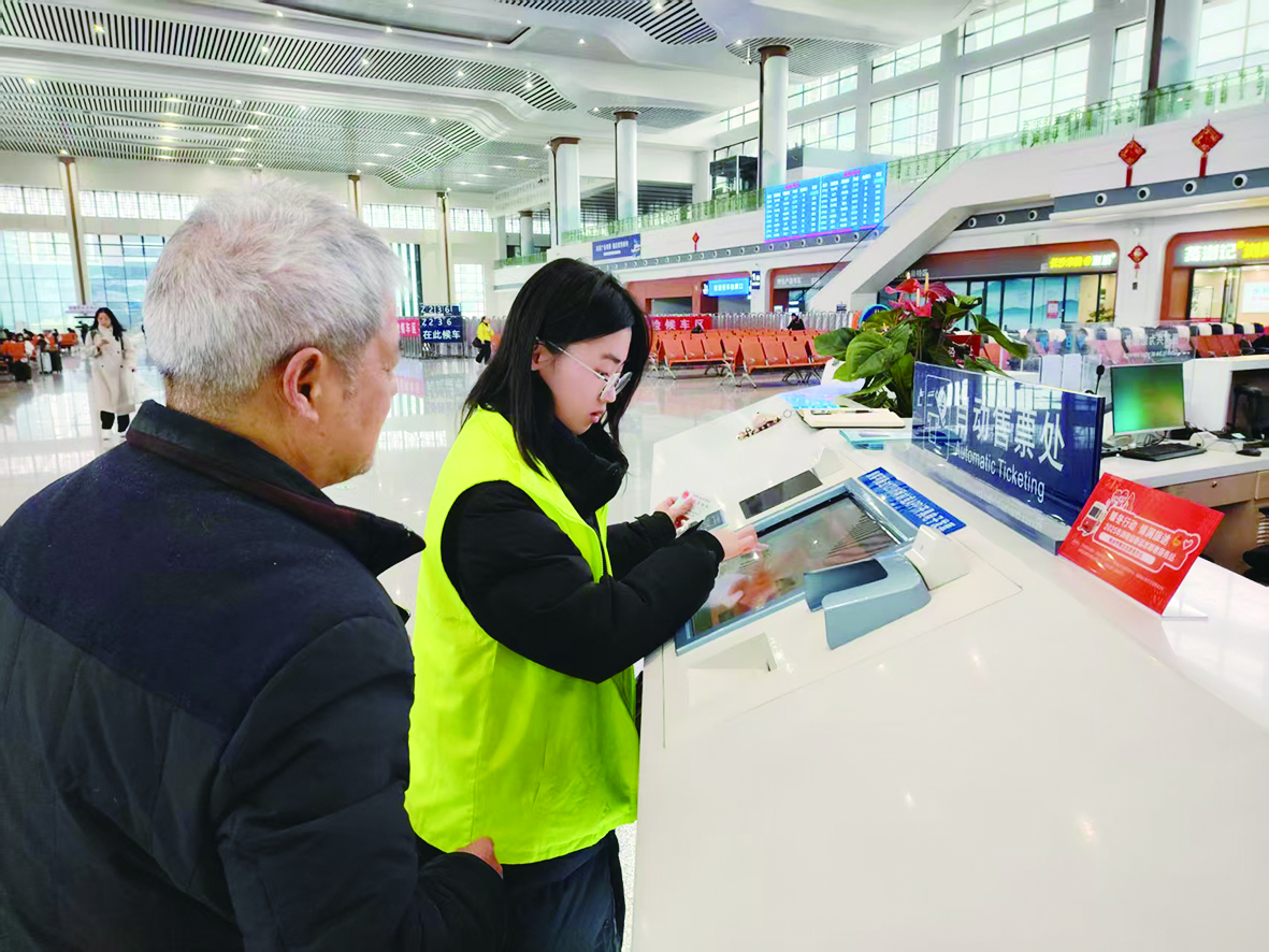 晚报志愿者为老人提供车票改签服务。 株洲日报全媒体记者/沈勇跃 摄