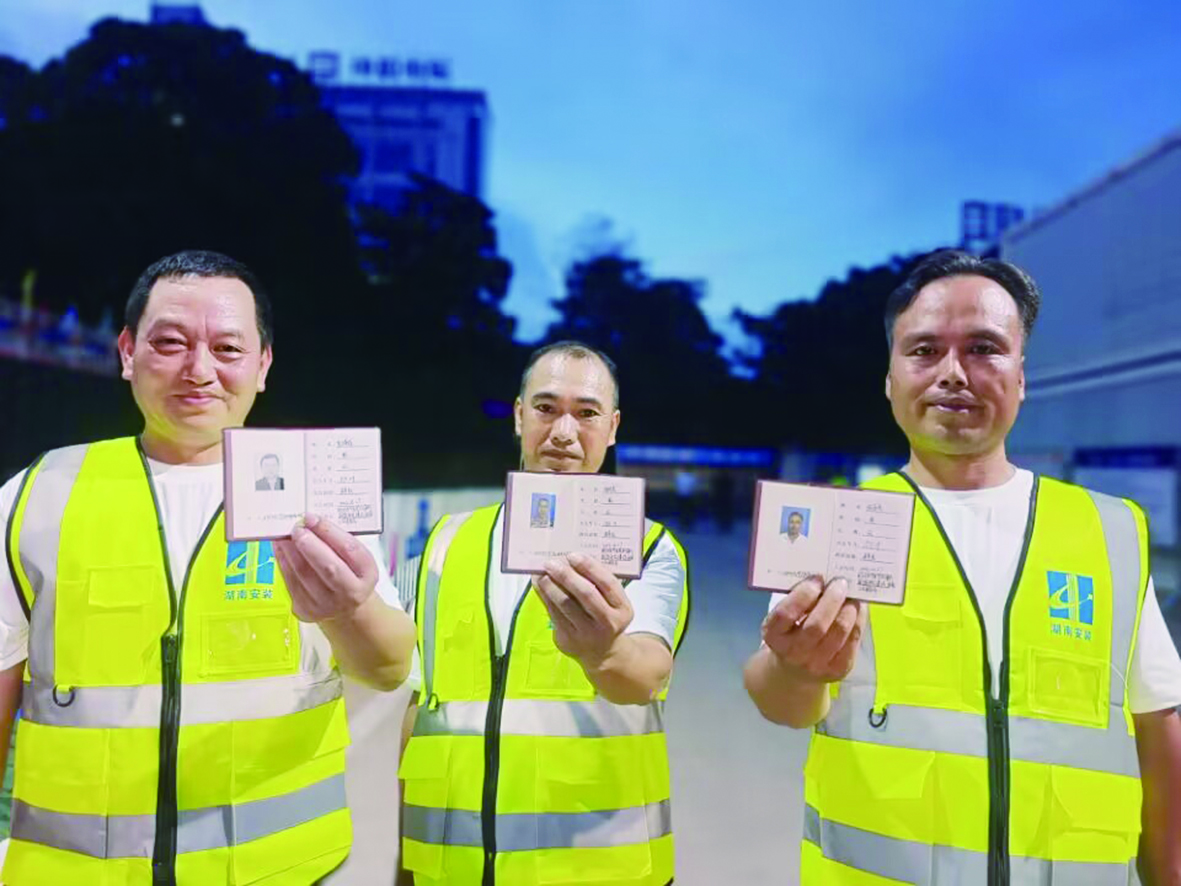 建筑工人加入工会后,亮出了会员证(资料图)。