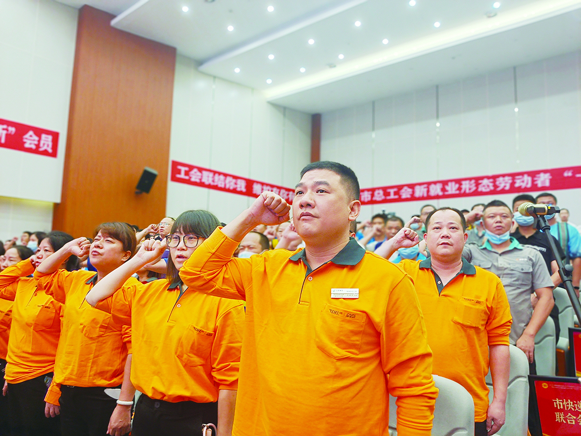 新就业形态劳动者集中宣誓加入工会组织(资料图)。 记者/何春林 摄
