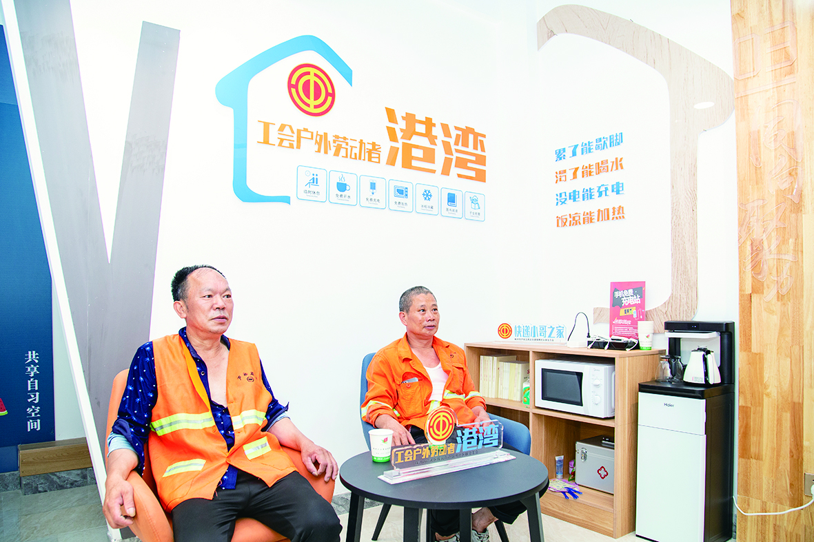环卫工在工会户外劳动者港湾休息(资料图)。 记者/何春林 摄