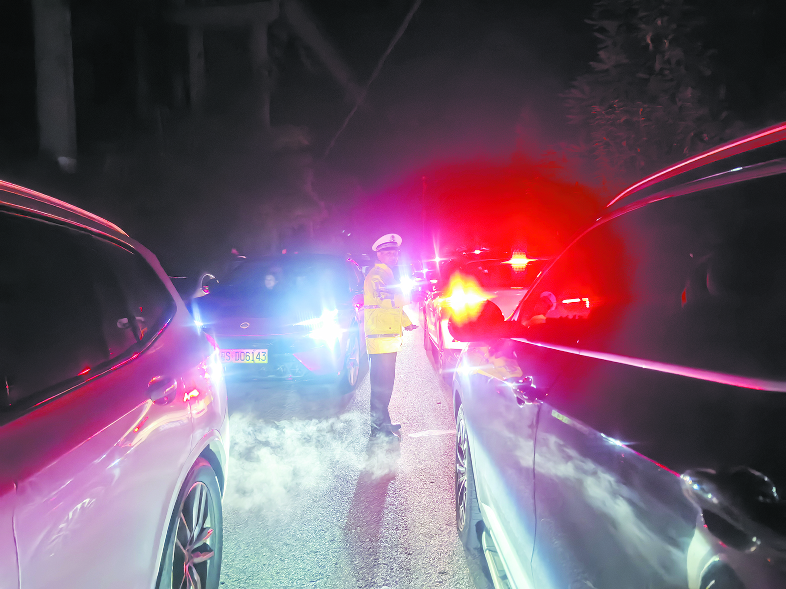 2月3日(正月初六)以来,株洲各地迎来春运返程高峰。炎陵县通往江西、广东等邻近省份的4个高速公路收费站车流量激增。炎陵县公安局交警大队全员上岗,通过采用“远端分流、中端管控、近端疏导”战术,在收费站广场设置导流带,实时监测车流动态,确保道路安全畅通。图为当地交警在接近0℃的夜间,对车辆进行及时疏导,不让群众的幸福被堵在路上。