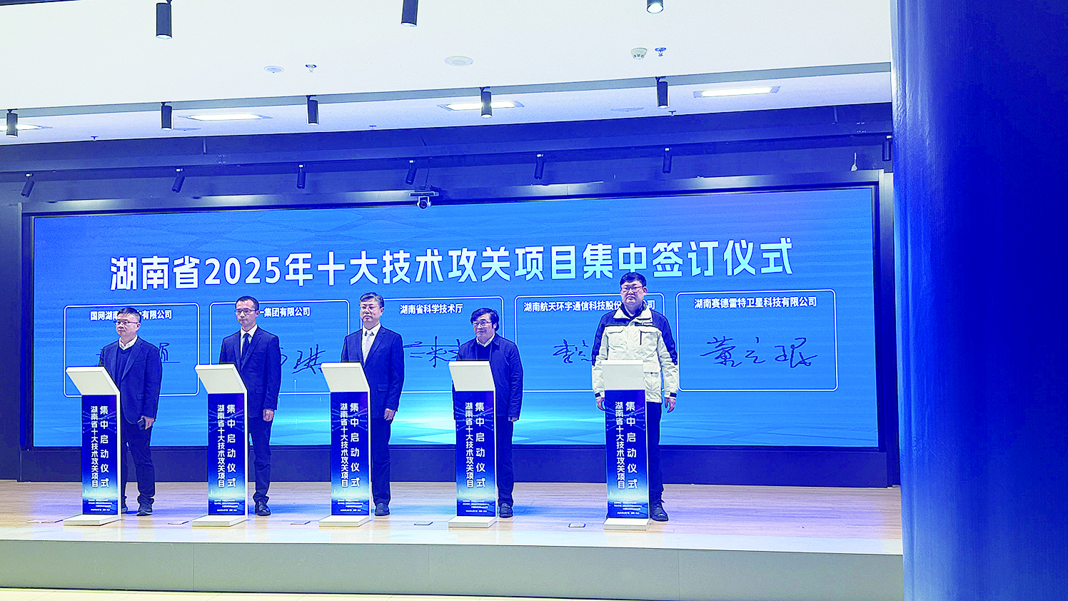 株洲日报讯(全媒体记者/陈驰 通讯员/童心雅) 2月7日上午,湖南2025年“十大技术攻关项目”集中启动仪式在长沙举行。由湖南赛德雷特卫星科技有限公司(以下简称“赛德雷特”)牵头的“基于北斗导航的精密管道轨控卫星平台研发”项目参与集中签约,并登台进行项目推介。