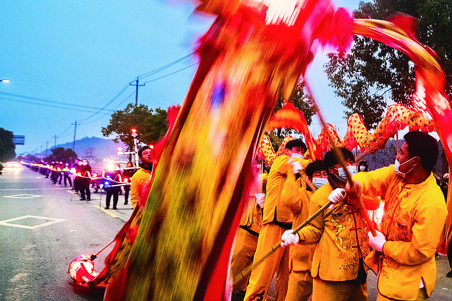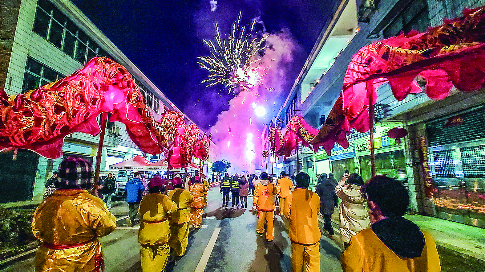 218米的彩灯长龙在黄龙村行进。汤磊 摄