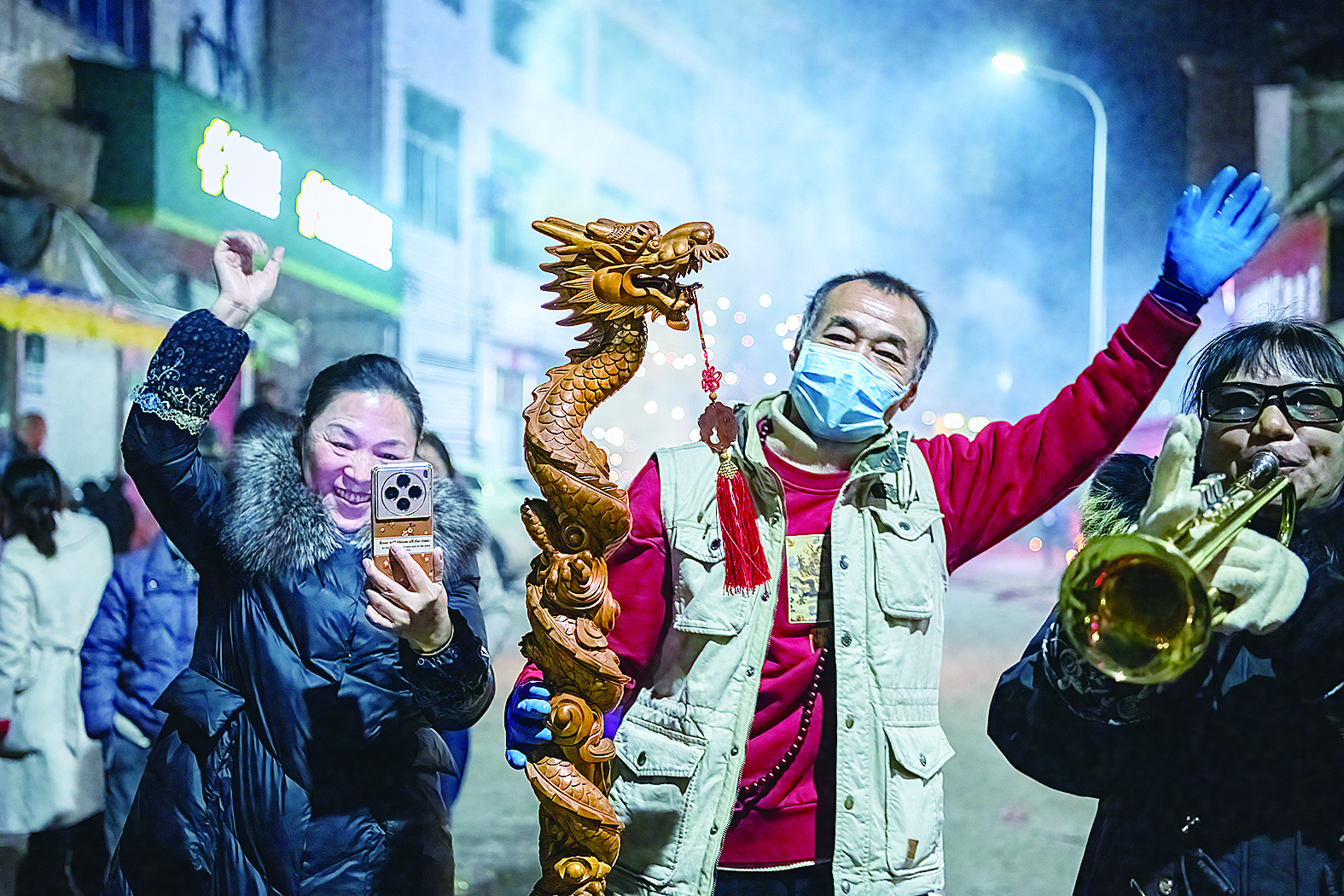 木雕非遗传承人邹子彦手持龙杖在现场舞动。咏洲 摄