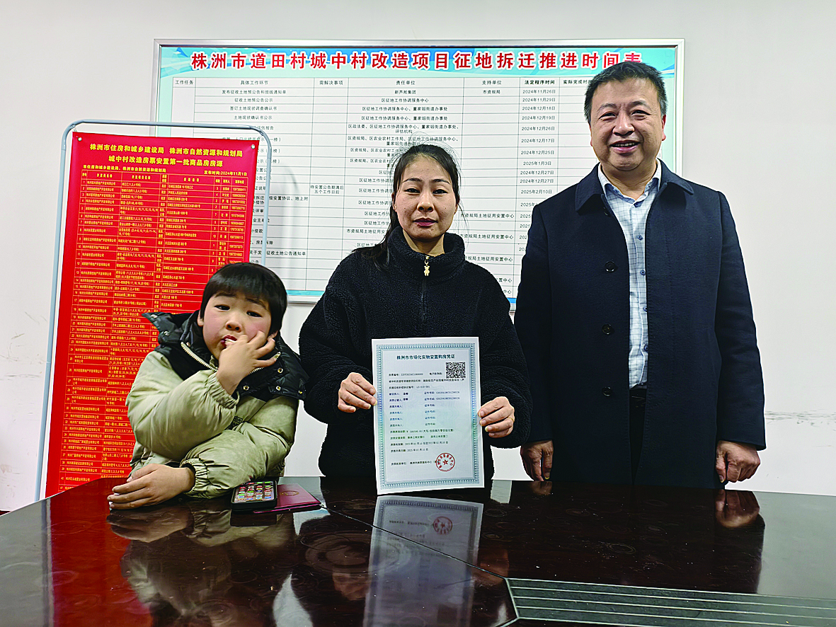株洲日报讯(全媒体记者/杨凌凌) 2月10日下午,芦淞区董家塅街道举行房票首发仪式。来自百井村的漆女士,作为城中村改造的被征收人,领到了面值58.05万元的房票,这也是芦淞区发放的首张房票。