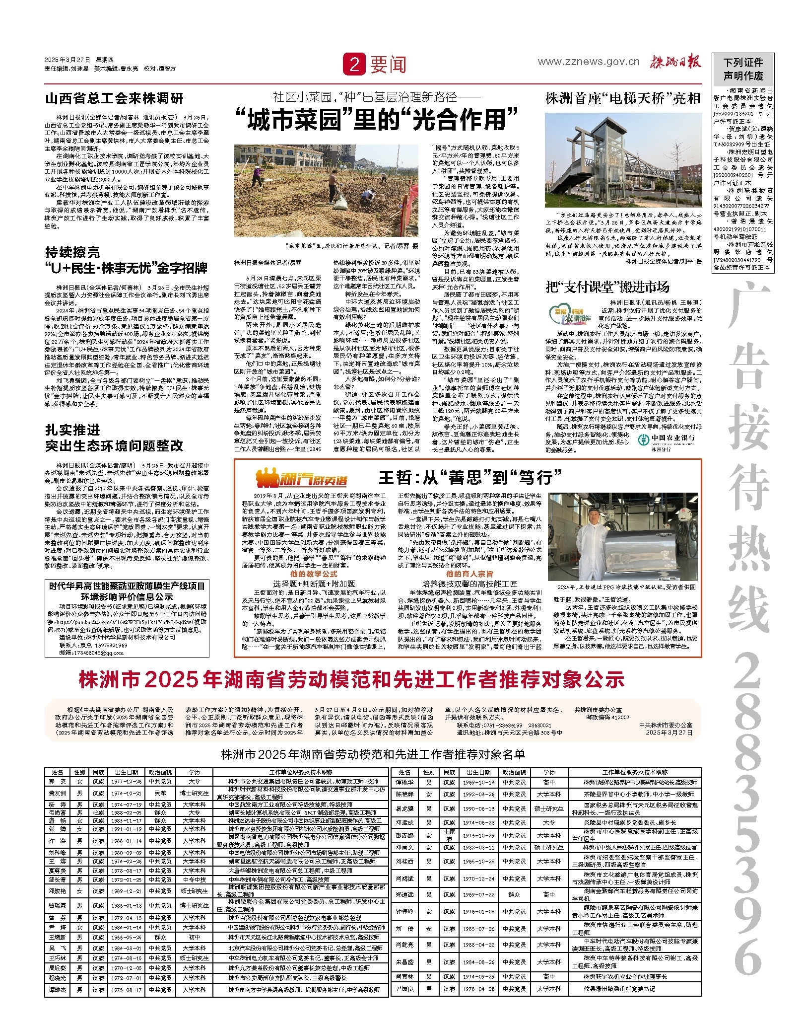 株洲市2025年湖南省劳动模范和先进工作者推荐对象名单