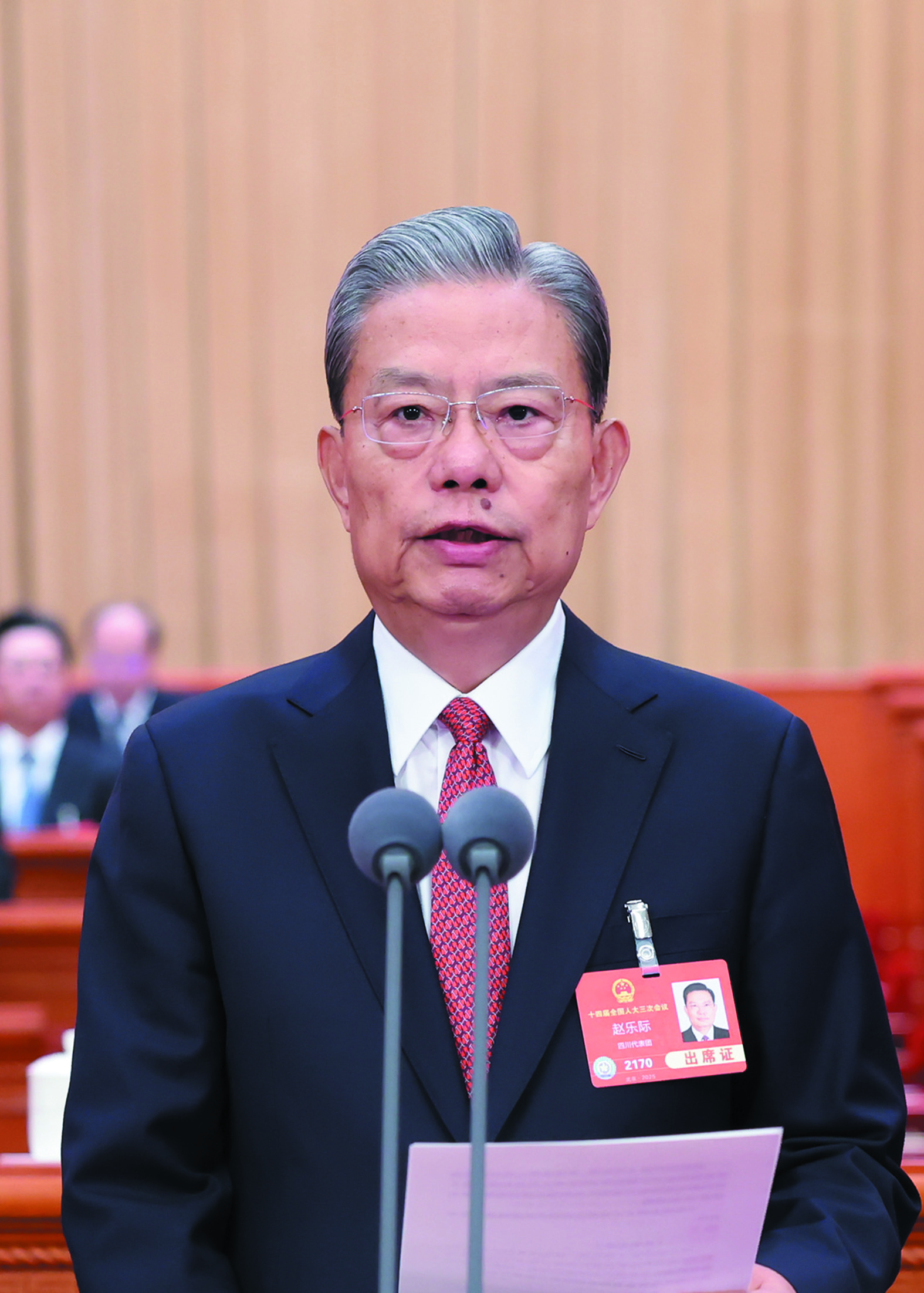 3月5日上午,第十四届全国人民代表大会第三次会议在北京人民大会堂开幕。赵乐际主持开幕会。 新华社记者/黄敬文 摄