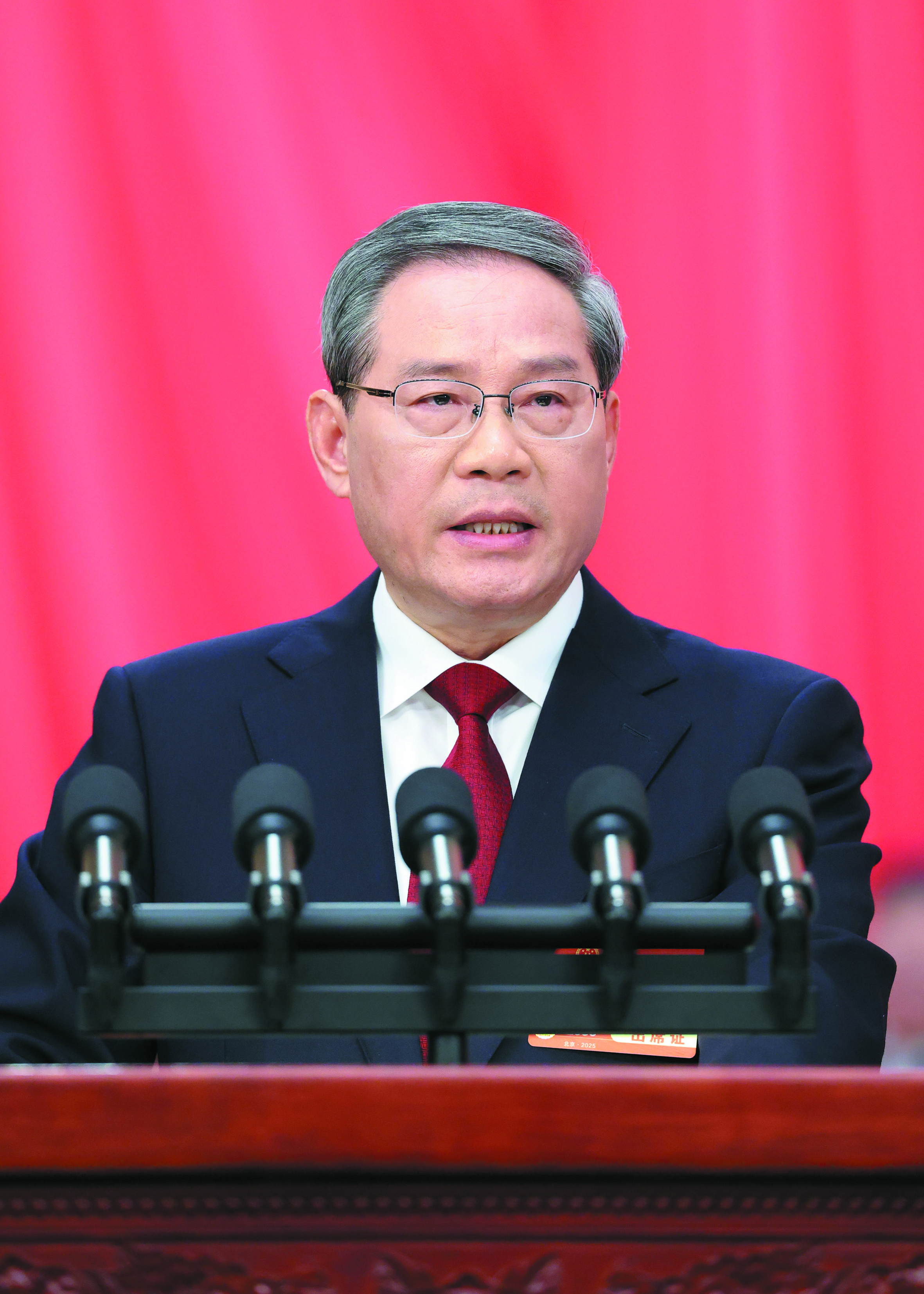 3月5日上午,第十四届全国人民代表大会第三次会议在北京人民大会堂开幕。国务院总理李强作政府工作报告。新华社记者 刘彬 摄