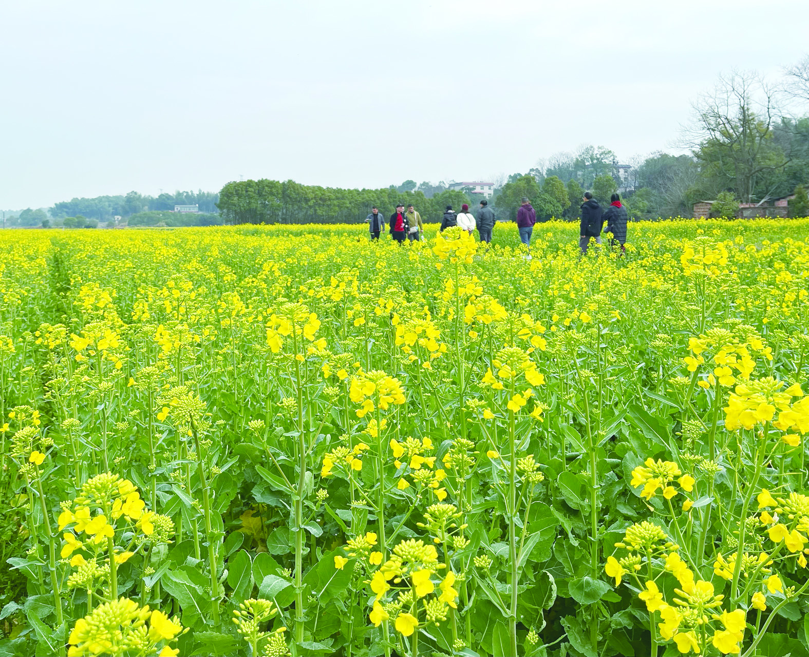3月8日,荷塘区仙庾镇徐家塘村油菜种植基地,油菜花盛开,吸引不少市民前来赏花。村党总支书记周占民介绍,该村从2016年开始打造油菜种植基地,油菜种植面积超过1000亩,油菜花花期持续到3月底,这段时间是油菜花的最佳观赏期。图为市民在踏春赏花。