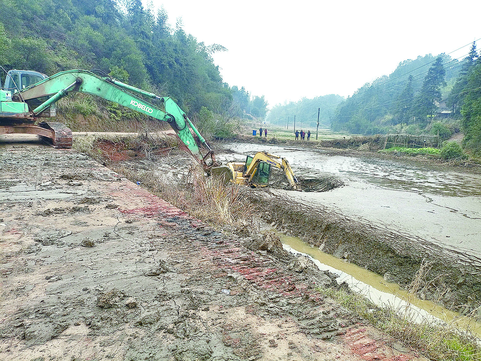 天元区三门镇正抢抓黄金期,修复毁坏的山塘、道路等基础设施。 记者/杨如 摄