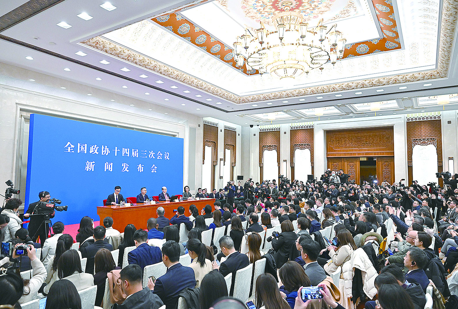 3月3日,全国政协十四届三次会议新闻发布会在北京人民大会堂举行。大会新闻发言人刘结一向中外媒体介绍本次大会有关情况并回答记者提问。 新华社记者 金良快 摄