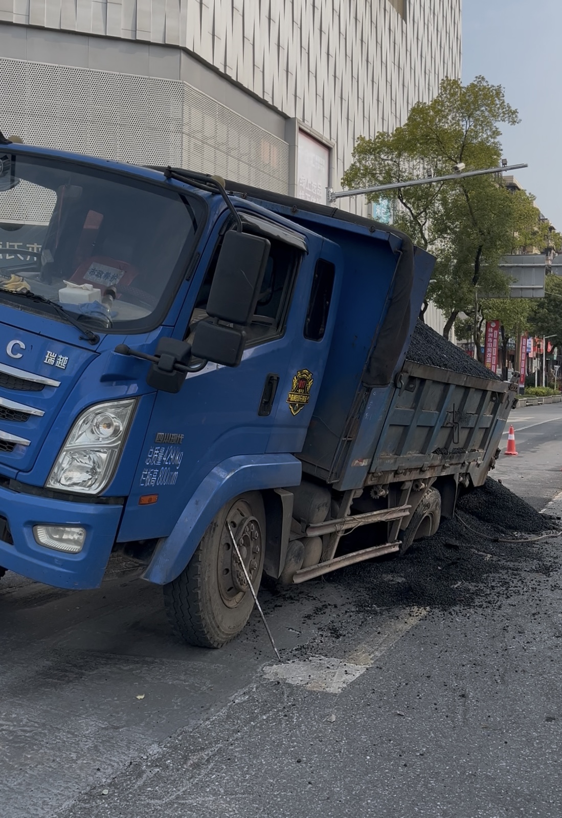 新铺好的路面被压塌陷