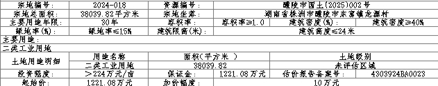 2024-018:(一)竞得者应在成交确认书签订之日起10个工作日内签订出让合同。(二)土地成交价款由竞得者在出让合同签订之日起180日内全额缴清,逾期未缴部分,根据相关规定,征收违约金。(三)由湖南醴陵经济开发区按现状条件交地,并承担因交地产生的相关法律责任。(四)须按醴陵市自然资源局出具的《醴陵市新能源汽车动力电池正极材料工程建设项目A地块用地性质认定蓝线图及规划条件》实施。