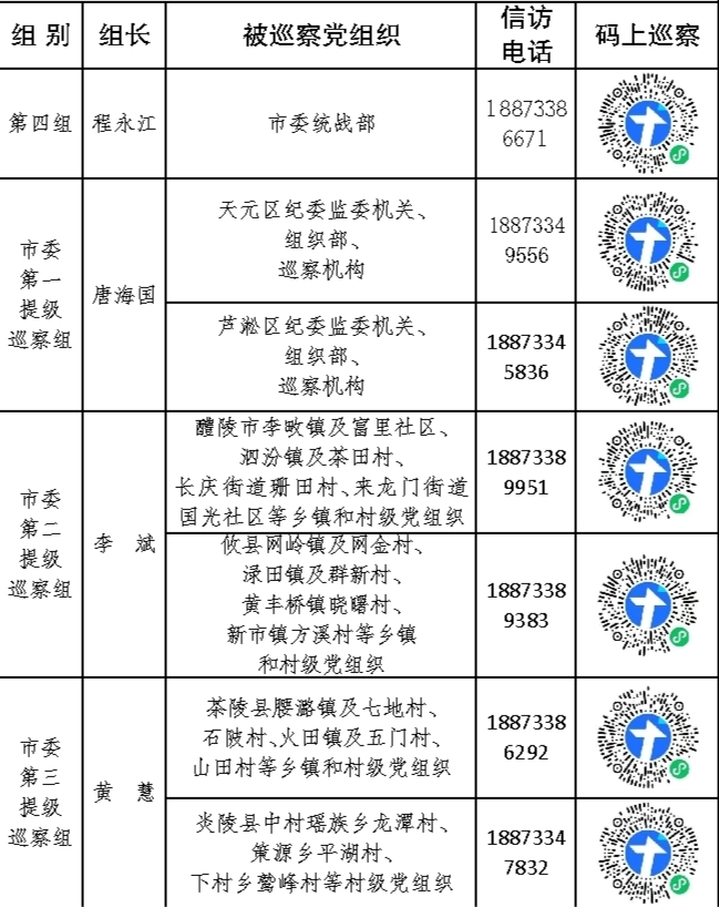 十三届市委第七轮巡察进驻一览表