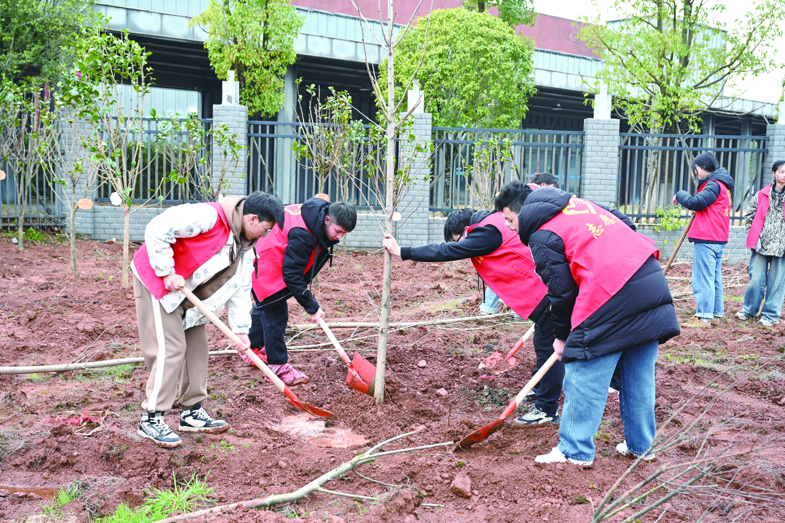在株洲职教科技园智慧路旁的植树现场,人头攒动,大家分工协作、干劲十足,挥锹铲土、培植新苗。很快,这片10000平方米的空地上,新栽种的树苗迎风挺立,为春日增添勃勃生机。