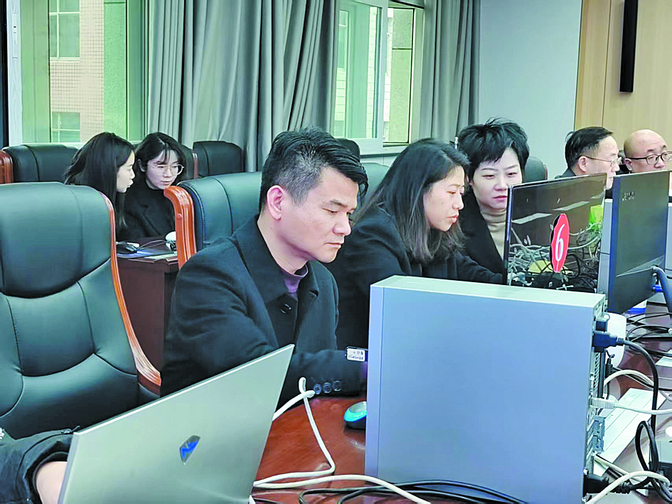 株洲市公共资源交易中心党委班子成员沉浸式体验“机器管招投标”。图/郭晓罗