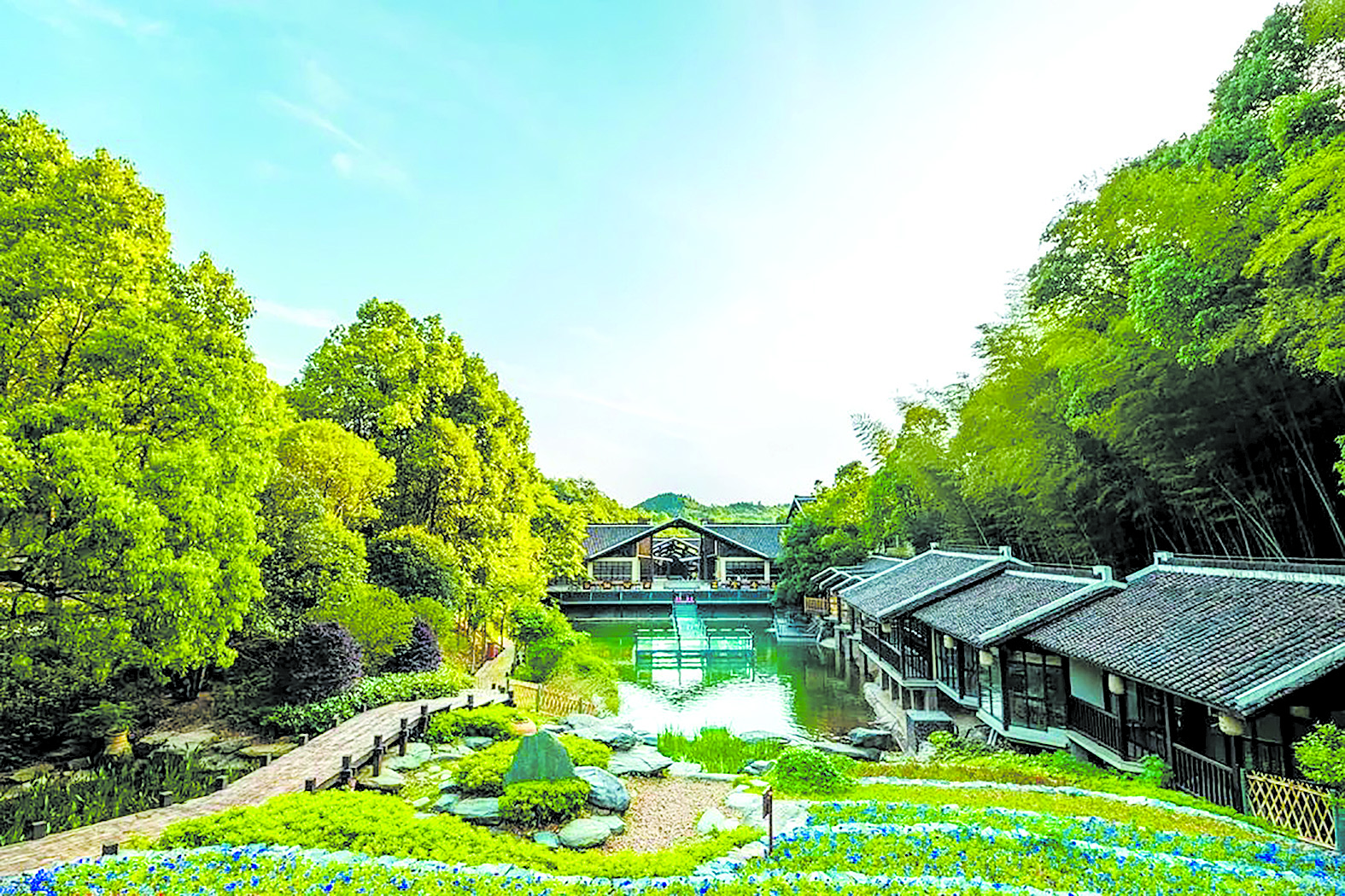 我们入住的耕食书院位于仙庾岭下山谷中。山坡上竹林里散落着座座小木屋,名号古雅,叫“听竹山房”。早春之夜,格外沁凉,沿山边竹林栈道漫步,竹影溶溶,路灯萤萤,灯下的时光仿佛凝固了,让人进入一种禅修境地,只听到自己的脚步和呼吸。高高的文昌塔已隐在夜幕之后。竿竿修竹,团团杂树,丛丛草叶泛绿,枝枝山茶摇红,在眼前身后时隐时现,为我翻开那一页迷茫的历史。