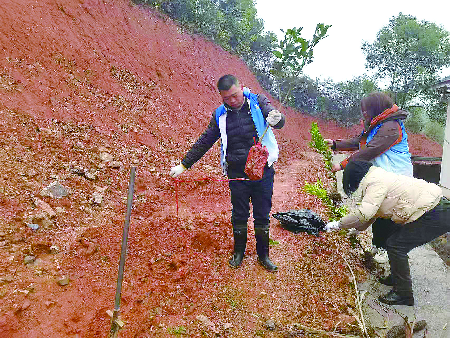 与此同时,建龙村新时代文明实践站积极组织志愿者,在村部后面的空地栽种树木。活动现场,有的挥锹挖坑,有的扶苗培土,有的提水浇灌,各个环节分工明确,衔接有序,多棵树苗在这片空地上“安家落户”,呈现绿意盎然之态。