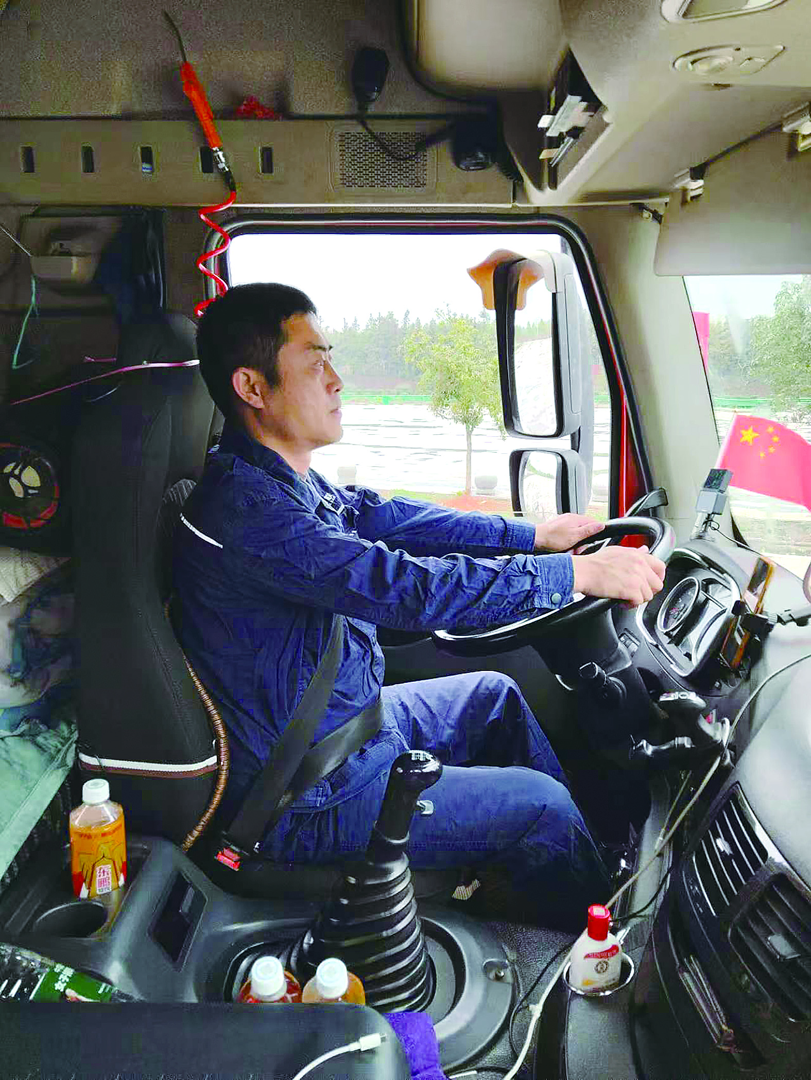 那是个热意尚未消退的九月,风裹着初酿的凉意撞进车窗,尹跃辉和押运员正享受着这惬意的时刻,突然,“砰!”的一声巨响,驾驶室的座椅猛然下沉,方向盘在手中剧烈震颤。“爆胎了!”千钧一发之际,肌肉记忆先于意识给出反应——双臂锁死方向盘,右脚均匀施压制动踏板,车辆缓慢向应急车道偏移。待车辆停稳,仪表盘上的时钟显示整个过程仅用时97秒。