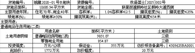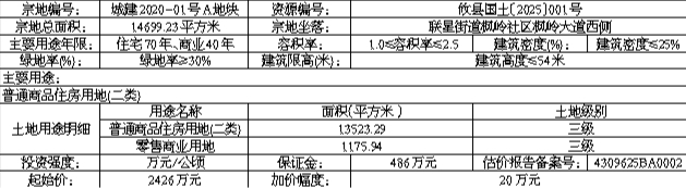 (一)规划建设要求:严格按照攸县自然资源局批准的规划条件《关于城建2020-01号地块的规划条件》(攸自然资条〔2025〕1号)进行建设。