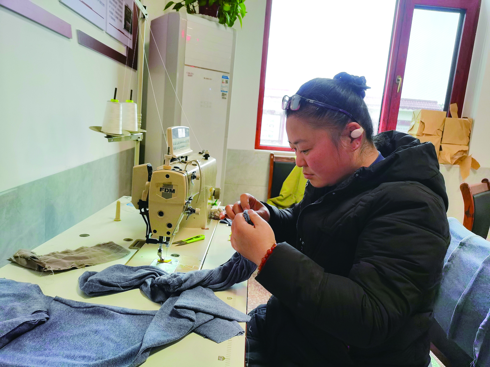 伞铺村村民通过学习缝纫技术,在家门口就找到了自己满意的工作。记者/杨如 摄