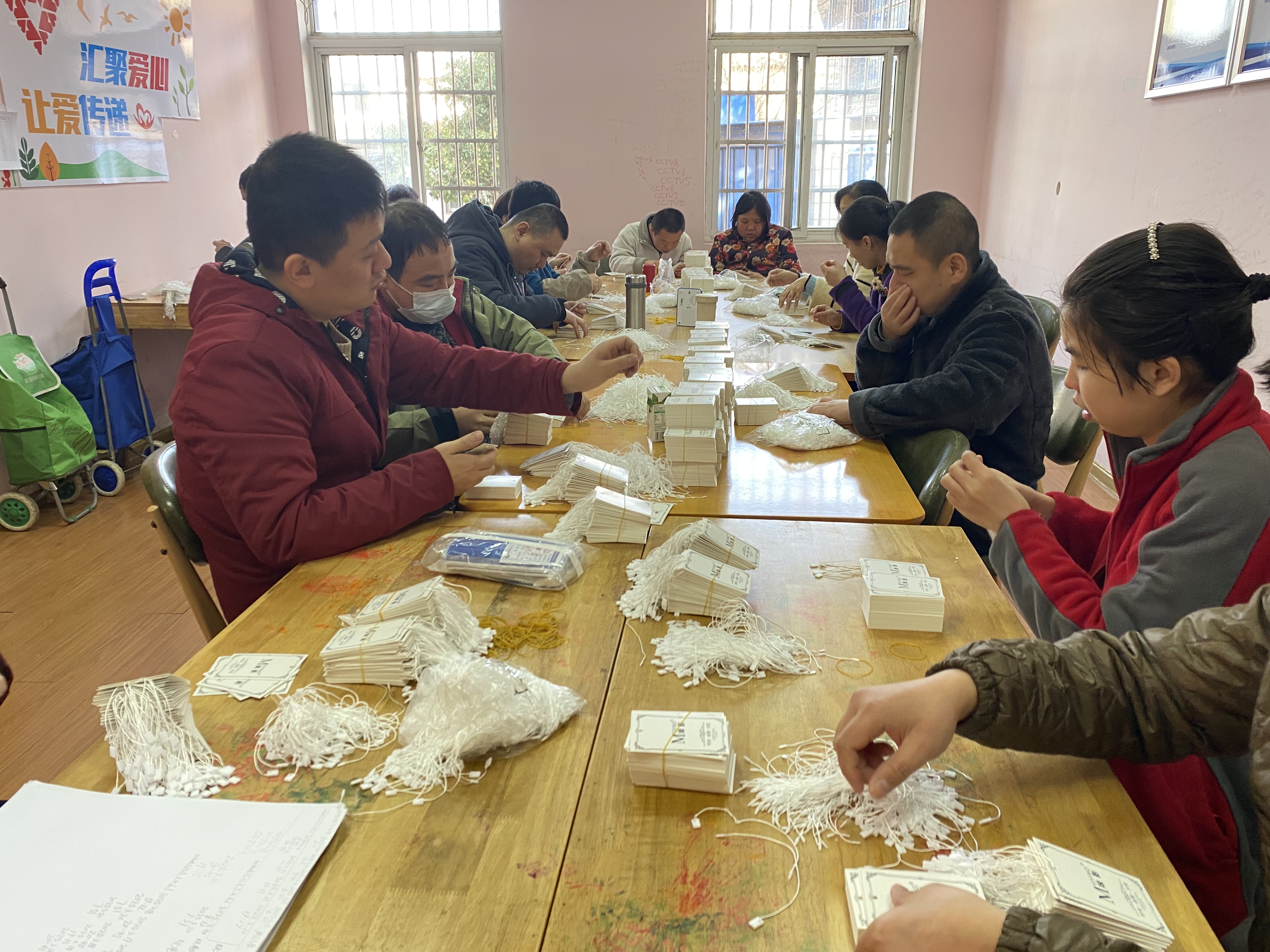 “一般情况下,我们上班时间段为上午9时至下午5时,中午也有午休时间,学员还可把产品带回家做。”负责日常管理的程江介绍,在这里大家均是计件式收入,所以不会产生压力,每天都有10人能胜任此工作,“接受程度较快、制作水平较高的残障人士,月收入在500—1000元。”