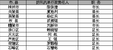 2025年株洲市市、县防汛抗旱行政责任人名单